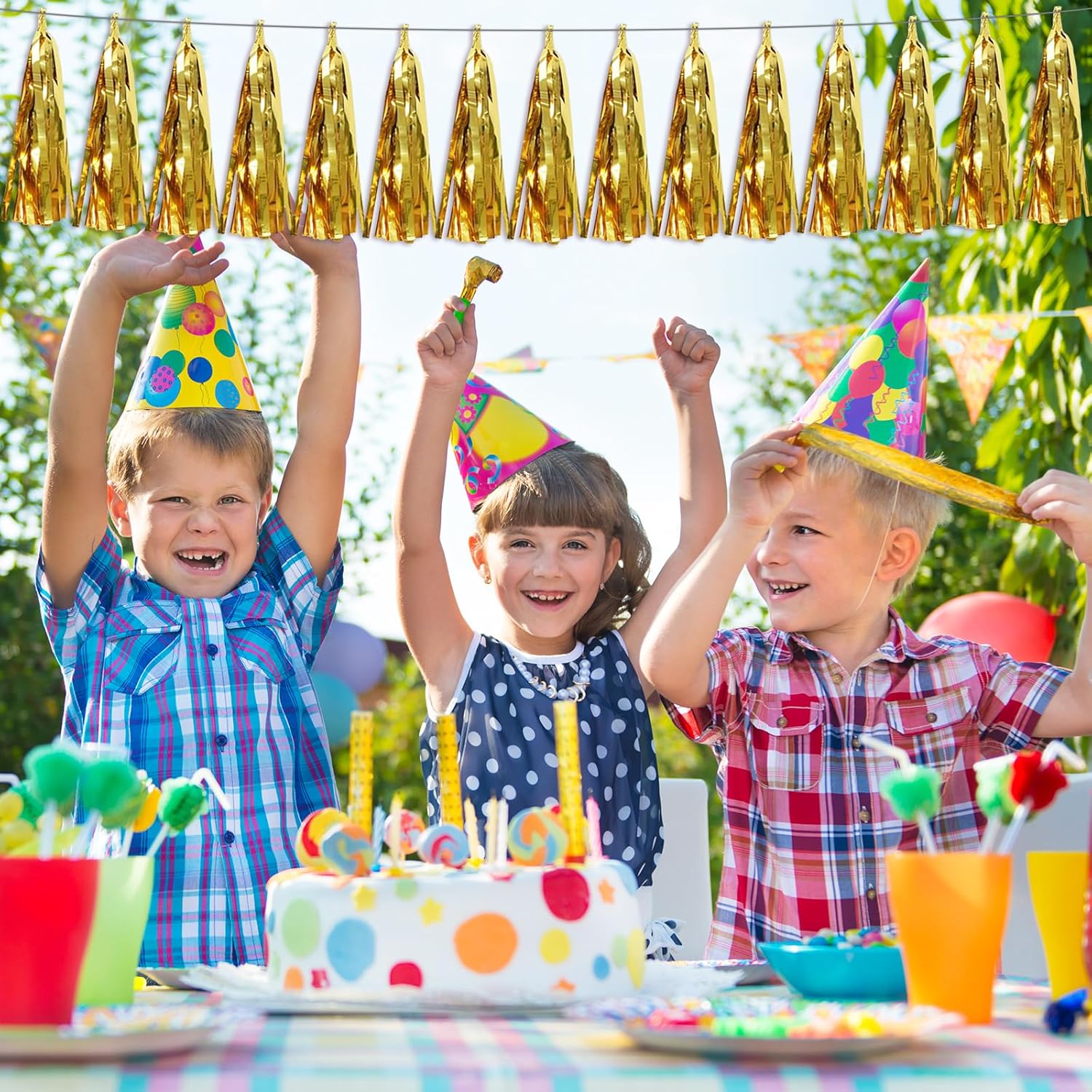 3P Gold Foil Fringe Metallic Tassel Streamers Banner Tassel Garland for Parade Floats, Bachelorette, Wedding, Birthday, Halloween, Christmas, Bridal/Baby Shower Party Decorations