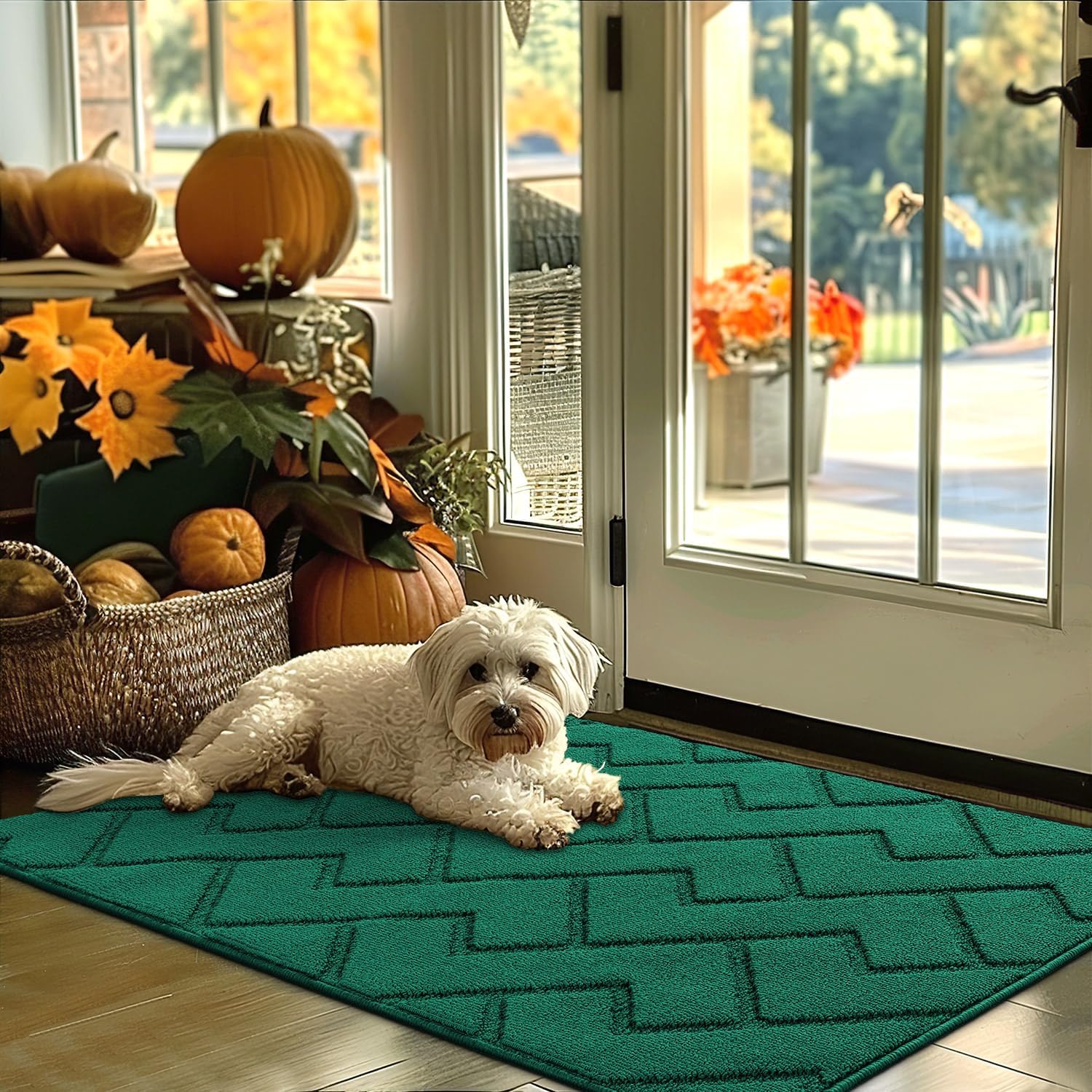 hicorfe Indoor Door Mat,Non Slip Door Mats,32"x48" Front Back Door Mat Rubber Backing,Absorbent Resist Dirt Entrance Inside Floor Mats for Entryway Washable Low-Profile(Evergreen)