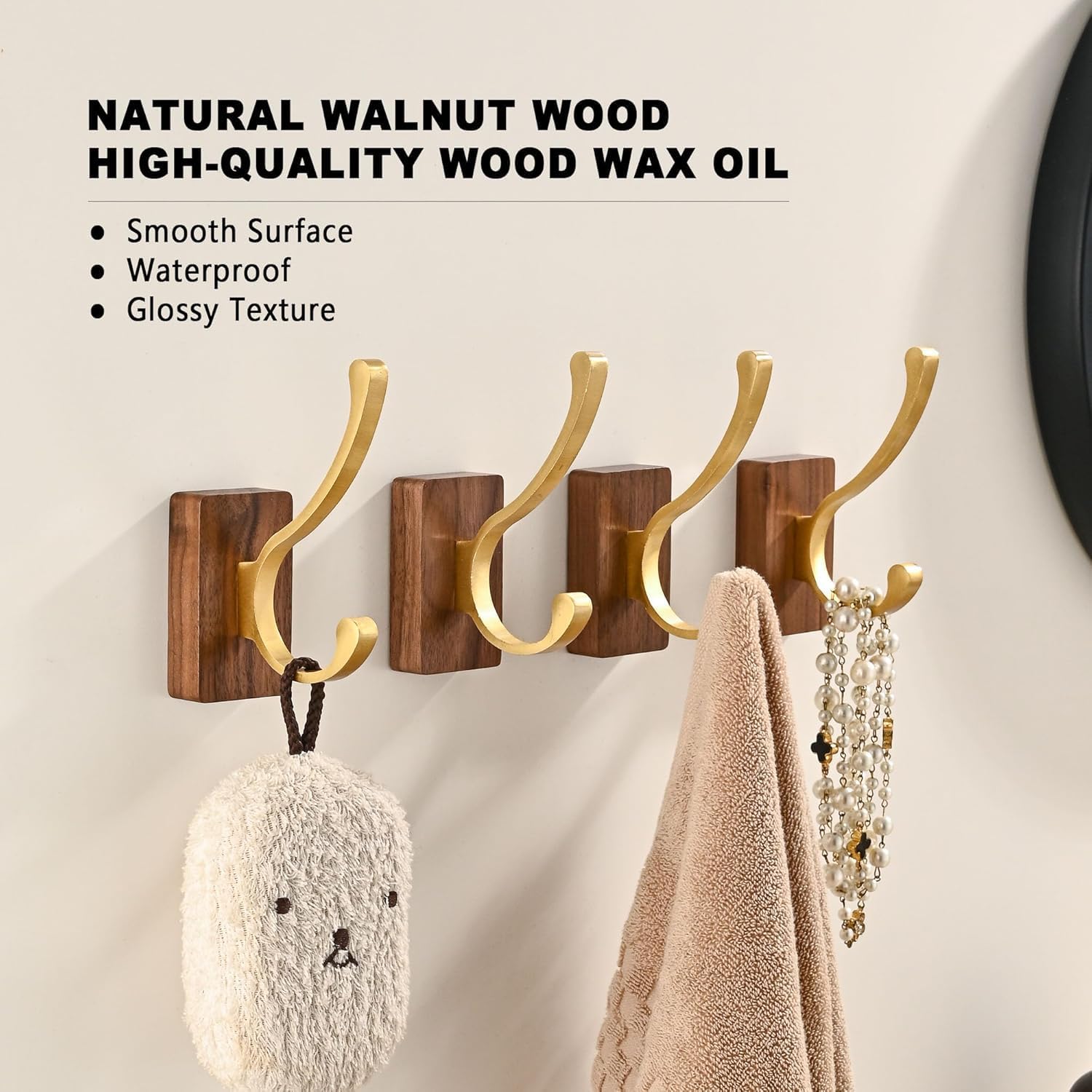 - [Durable and Sturdy]: Our hooks are made of thick and durable aluminum alloy, which is solid and sturdy. The hooks are also designed to withstand wear and tear, ensuring long-lasting performance. The base is a solid, natural North American Black Walnut Wood.