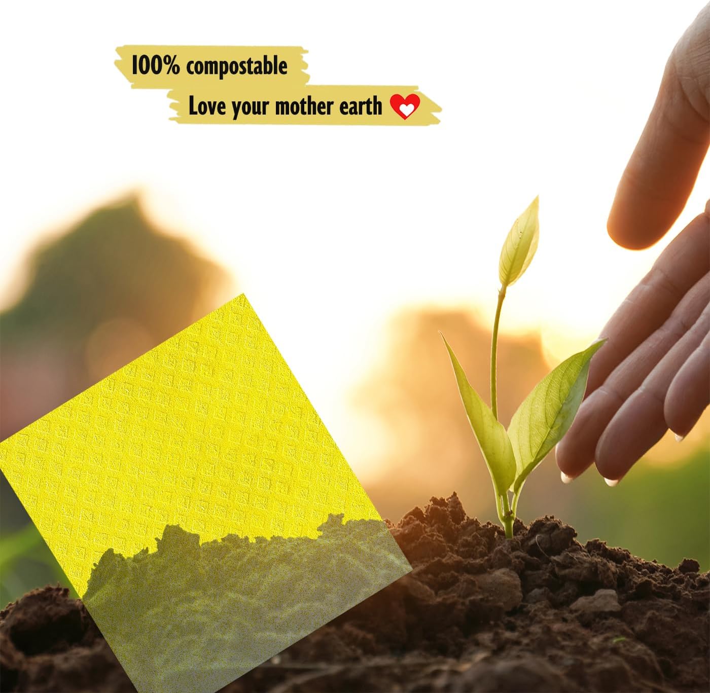 Swedish Dishcloths for Kitchen | 10 Pack Absorbent Cellulose Sponge Cloths Washable | Non-Scratch Reusable Paper Towels Quick Drying Cleaning Rag - Yellow