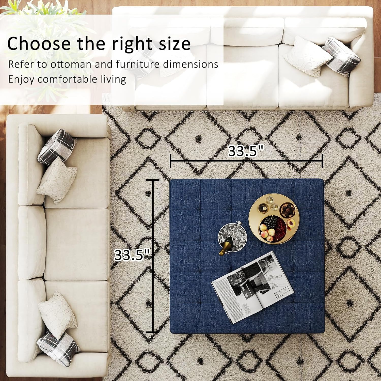 - Ottoman Coffee Table Size:33.5" Wx33.5" Dx18.5" H. Easy to bear 400 pounds