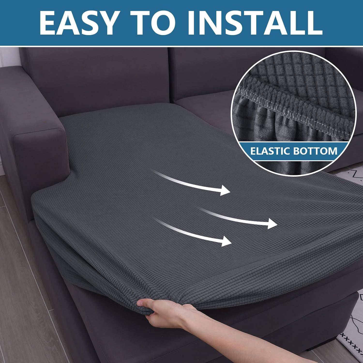 - [Stay in Place] The unique elastic band design makes the individual couch cushion covers more fit the cushion, easier to install, and more concise in appearance. Even if the child bounces on the sofa, the pet plays on the sofa, or sleeps on the sofa, the waterproof cushion covers remains on the sofa or chair.