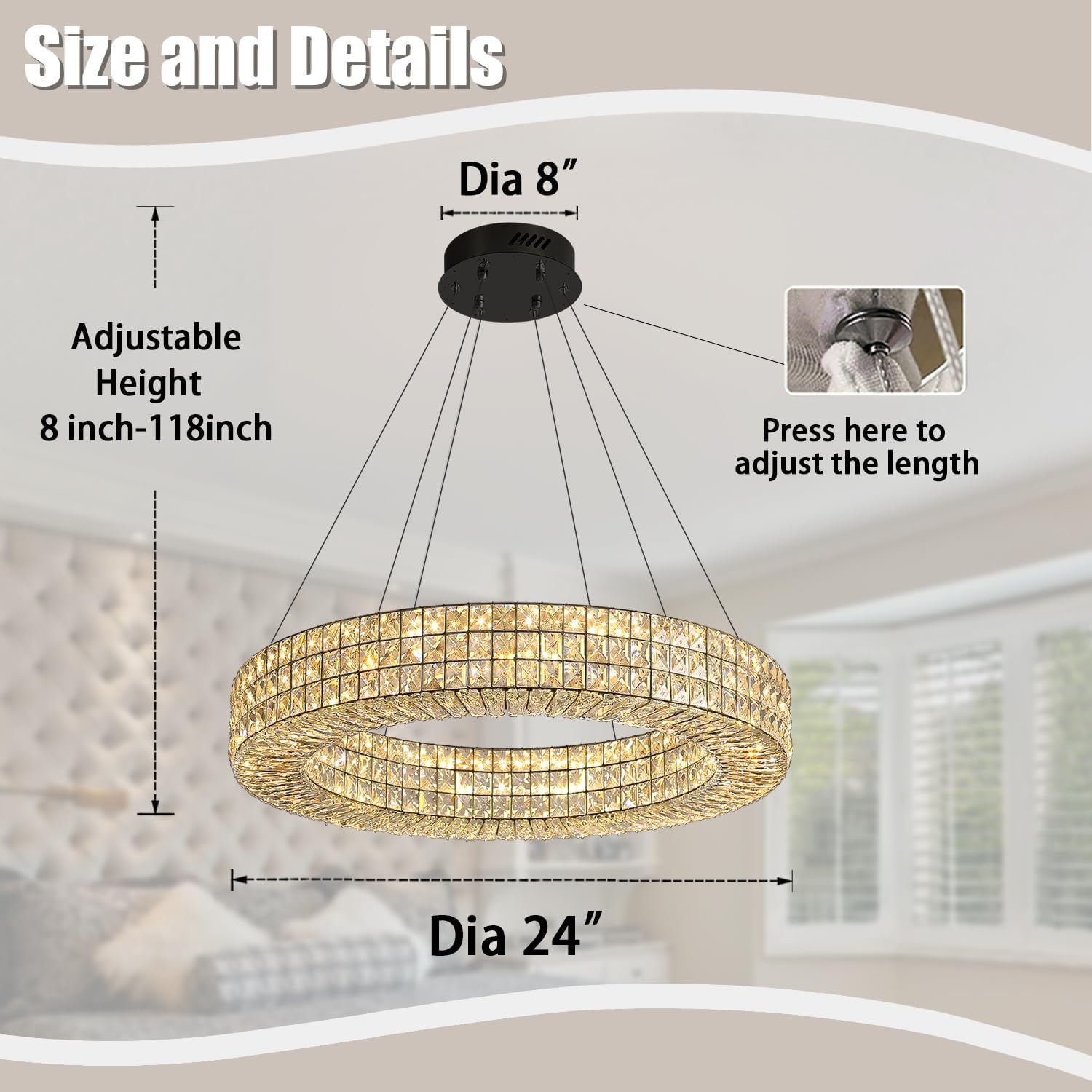 - 【Chandelier's size】 The size is D24" * H118", The pendant rope is adjustable, allowing for a minimum height of 20".Suitable for high-ceiling living rooms, foyers, entryways, dining rooms, stairwells etc