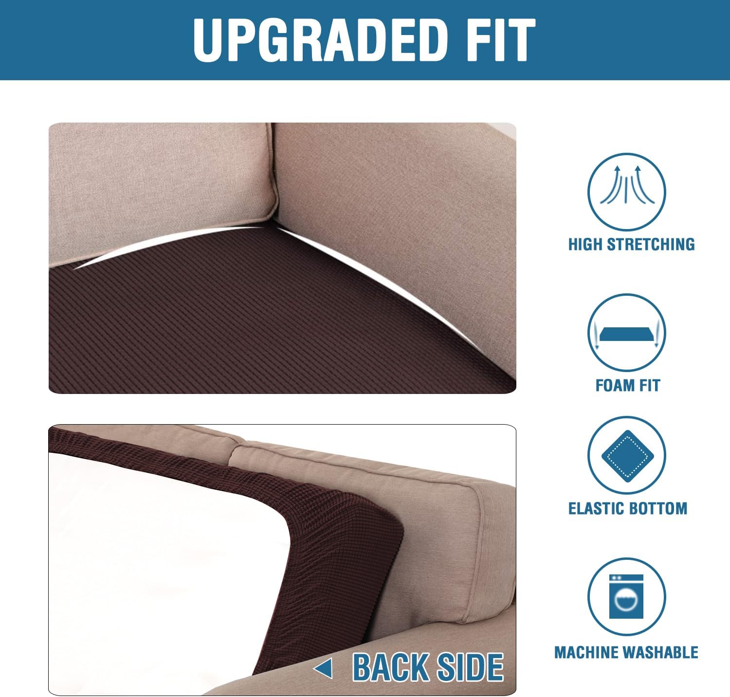 - NON SLIP: Effortless for installation (guide photos on selling page), sewn with thick elastic loops to cover the bottom edges. It is easy to install and take off, making your home more harmony, high recommended for both leather and cloth furniture