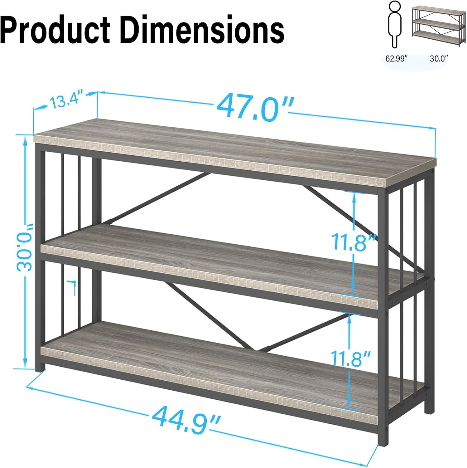 LVB Farmhouse Entryway Table, Metal Wood Console Table for Hallway, Industrial Rustic Sofa Table with 3-Tier Storage Shelf, Modern Entry Table for Foyer Front Home Living Room, Light Grey Oak, 47 inch
