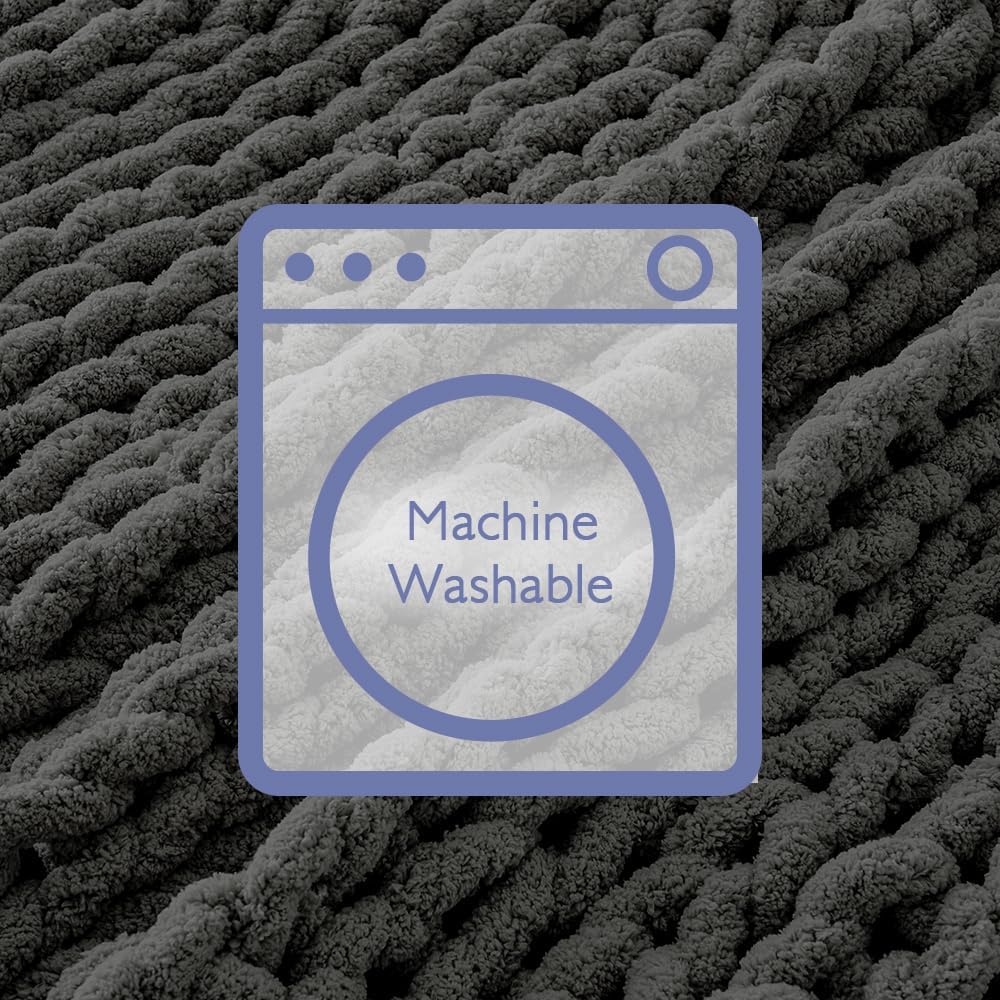 Bigacogo Chunky Knit Throw Blanket for Couch, 51x63 inches, 100% Hand Knitted with Thick Jumbo Chenille Yarn, Cozy Soft Large Rope Knot Cable Crochet Blankets for Sofa Bed Living Room, Dark Grey