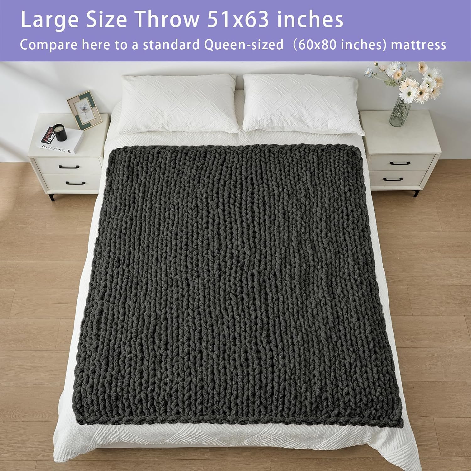 - No Shedding, No Stiffness, No Prickly: Our soft thick blankets and throws are knitted with premium chenille yarn to prevent shedding and stiffness, on chilly days, wrap you and your loved ones in the chunky blanket and enjoy this cuddly throw together