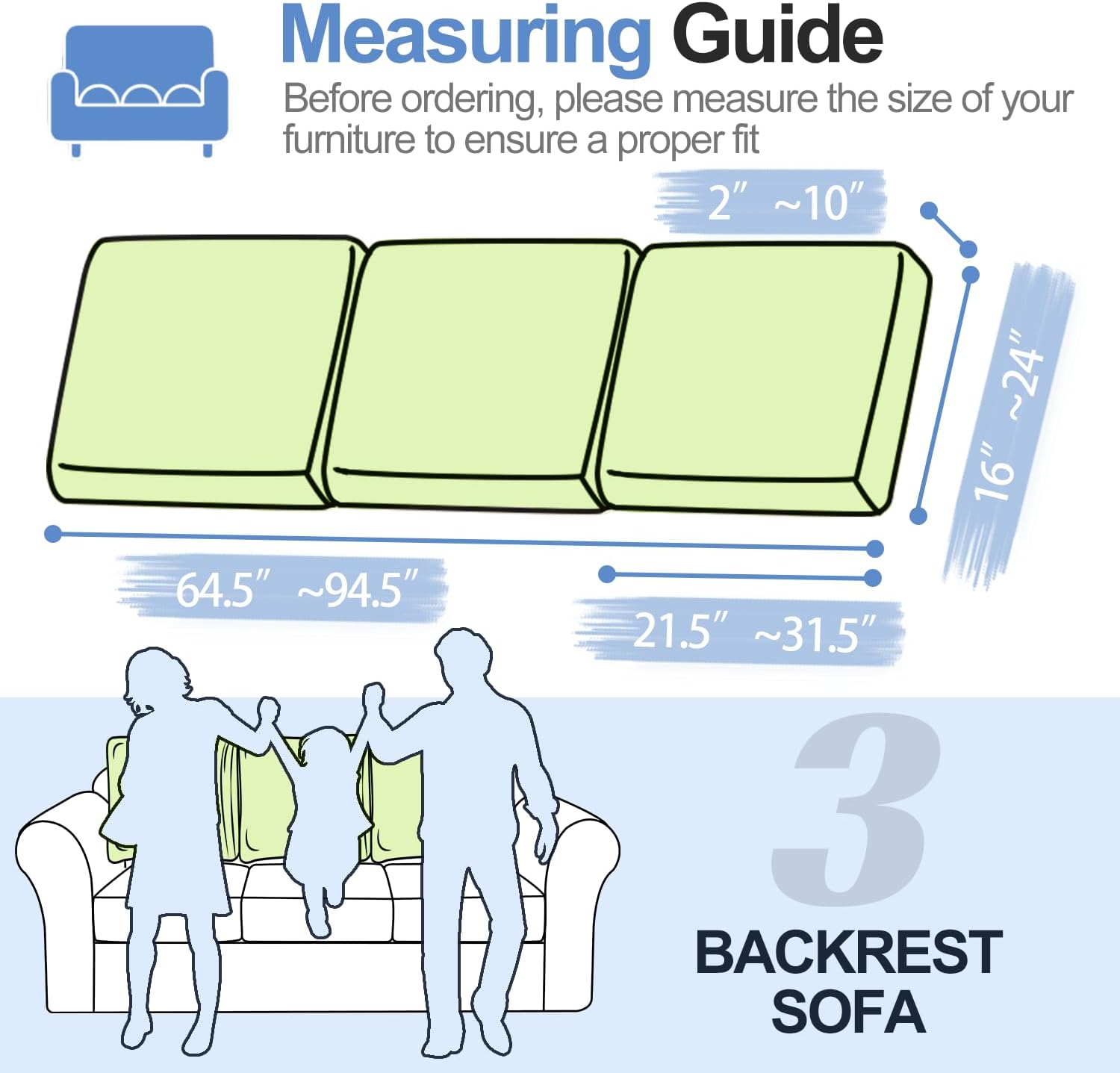- 【Easy to install】These couch backrest cushion covers are incredibly easy to install and can be completed within just a few minutes. It comes with elastic bands that securely fix the cover to the sofa, ensuring it stays in the right position. Before placing your order, we highly recommend that you measure the size of your furniture to ensure a perfect fit. These covers are suitable for both T-cushion and Box cushion styles and are highly recommended for use with both leather and fabric furniture.