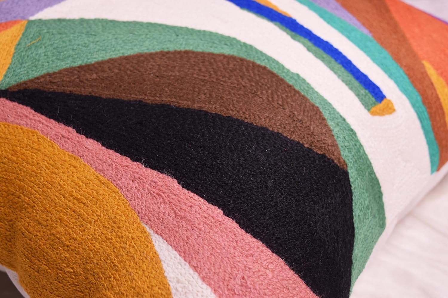 - ❤ Modern Throw Pillow Cover - Hand Embroidered: Our vibrant decorative pillow covers draw inspiration from Kandinsky's artistry and are meticulously hand-embroidered using soft wool. Our skilled artisans devote painstaking attention to detail, creating an extraordinary abstract pillow that enhances your home decor. An up-close look at this contemporary accent pillow reveals the exquisite craftsmanship of fine chain-stitch hand embroidery.