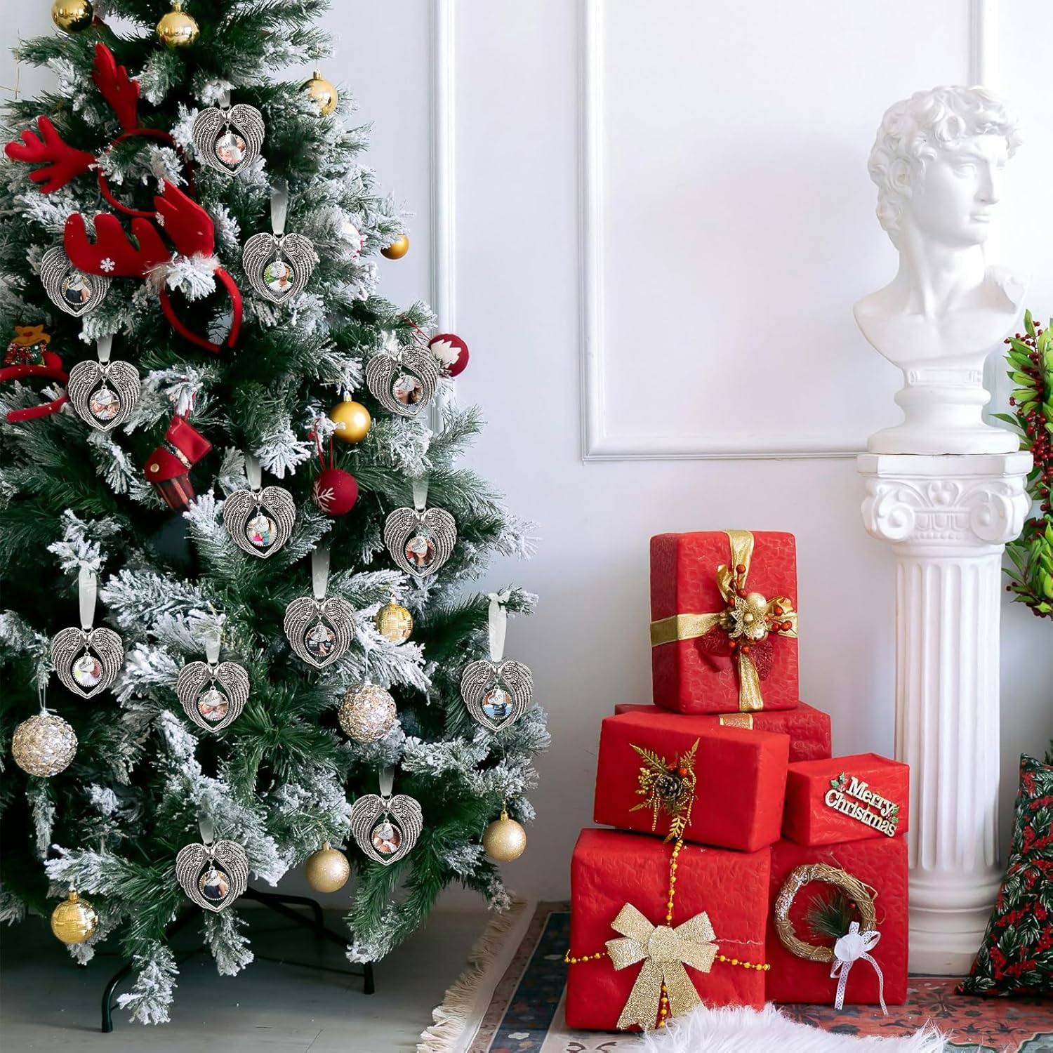 - Whether it's for your own tree or as a gift, these Christmas ornaments are a beautiful way to honor and remember those who are no longer with us. Create a loving tribute with our angel wings ornaments and keep their memory alive. Make this Christmas special with our personalized Christmas Ornaments Angel Wings with Custom Photo Frame