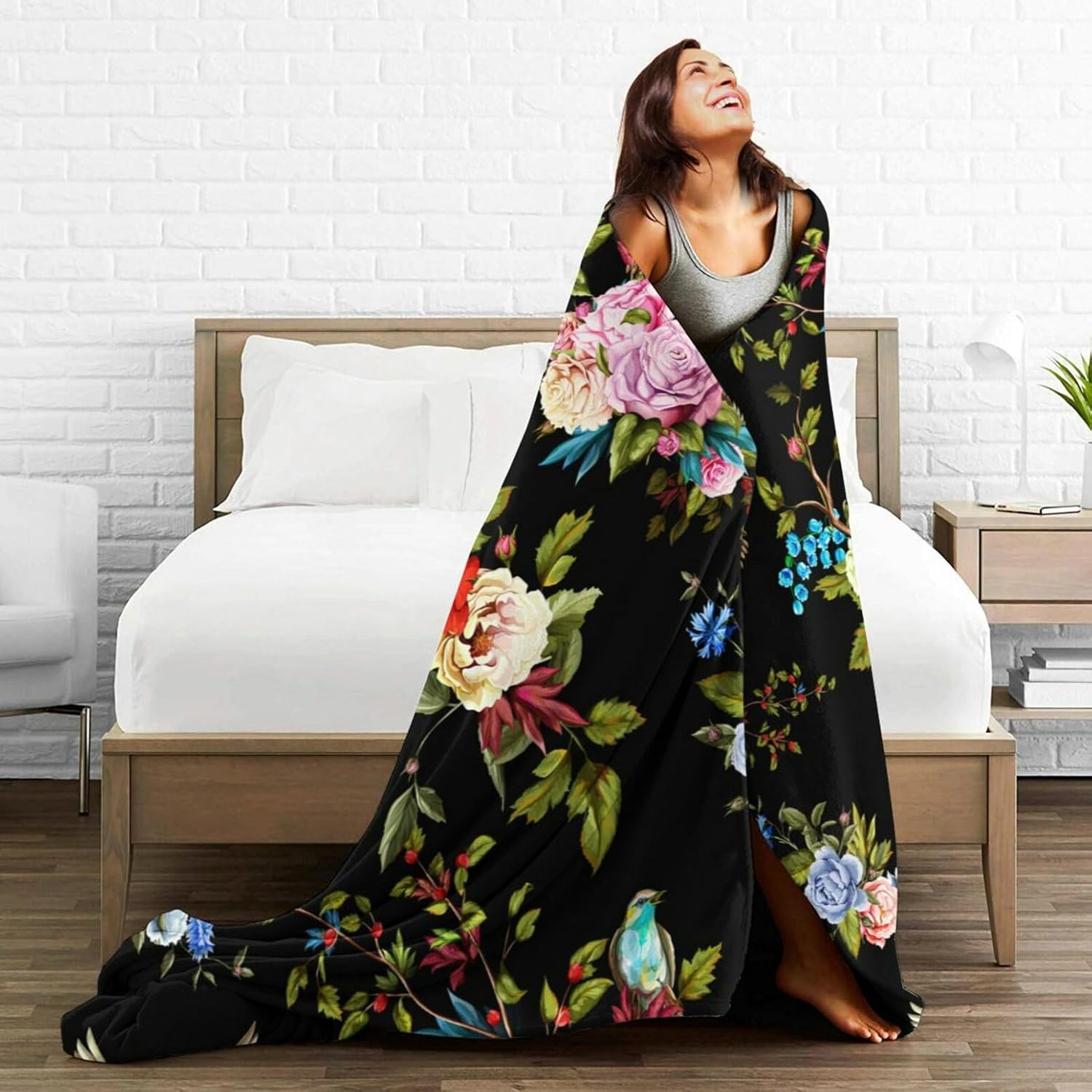 HGOD DESIGNS Wild Flowers Blanket for Women, Lightweight Soft Fleece Flannel Throw Blanket Peony Roses Sofa Couch Living Room 40x50 Inch