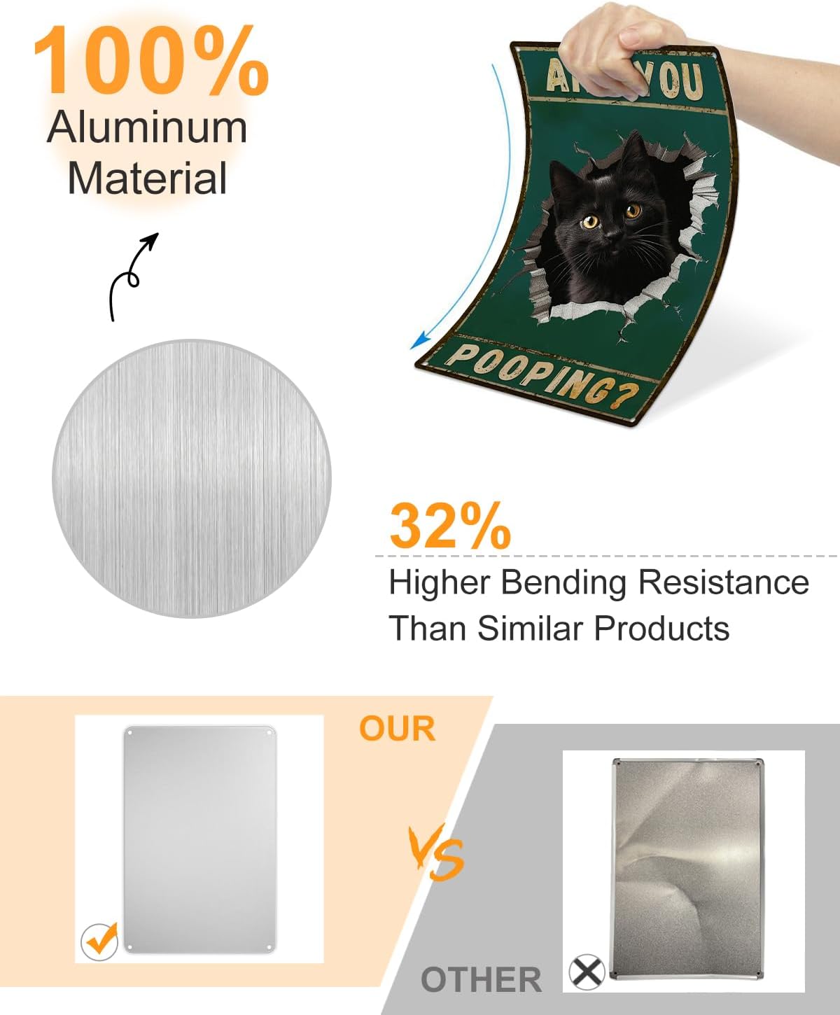 - 【Durable and Weather-Resistant】The toilet signs for bathroom are made from 100% rust-free strong aluminum, This black cat decor vintage metal sign comes in bright, eye-catching colors that won't fade over time.