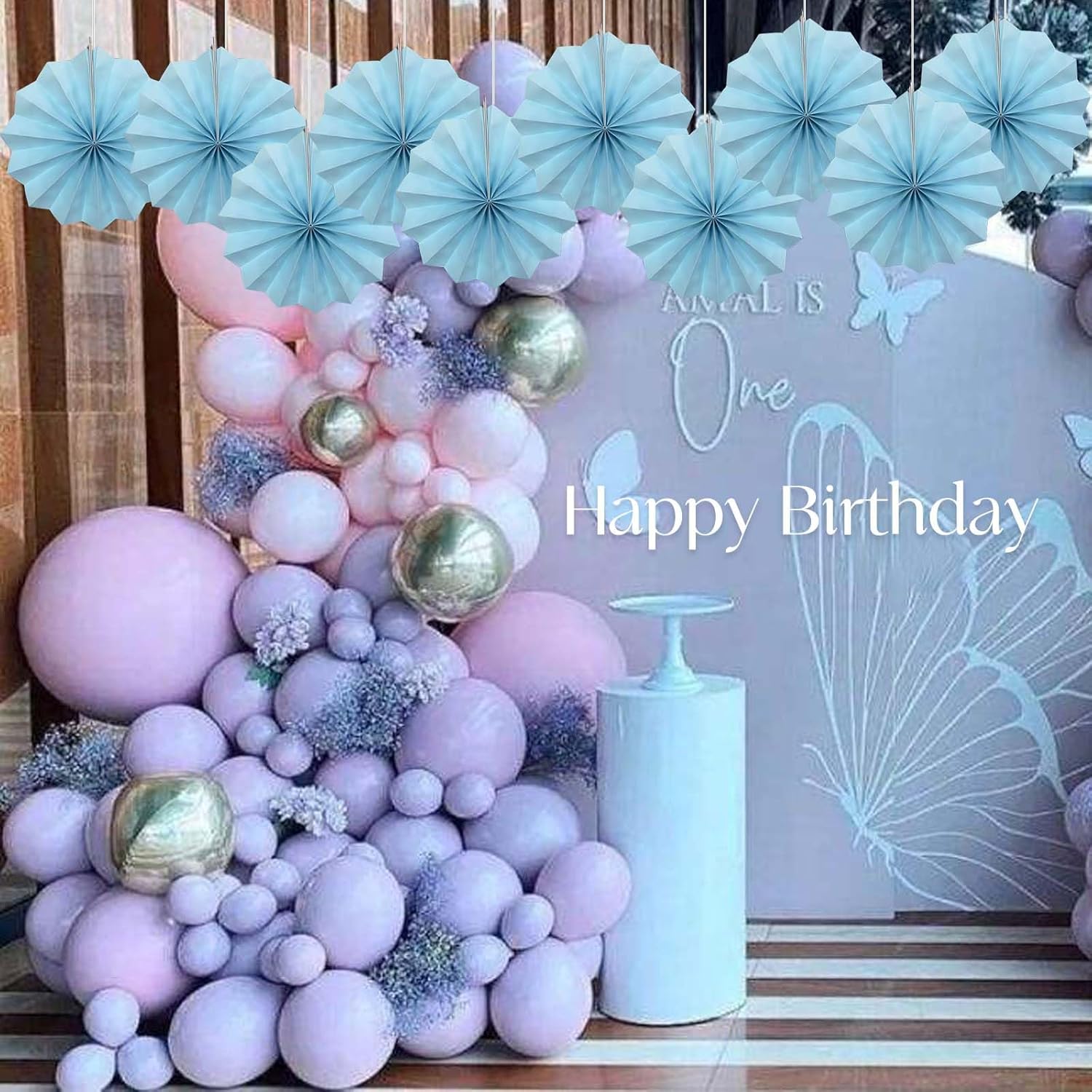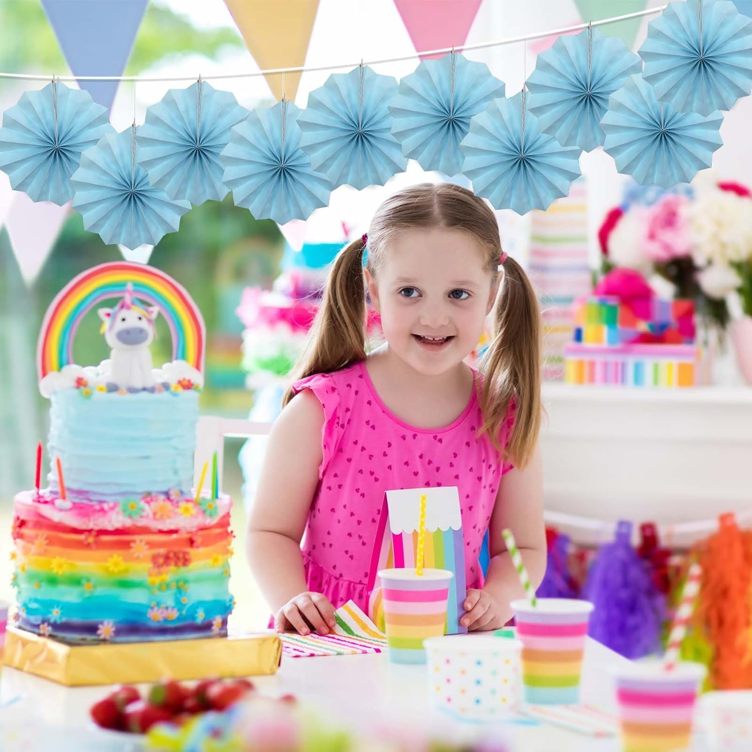 Blue Graduation Party Decor,Baby Blue Party Decorations,Christmas Baby Shower Decorations,Under The Sea Decorations,Blue Bachelorette Party 8in Hanging Paper Fans 30 Color DIY Set (Light Blue)
