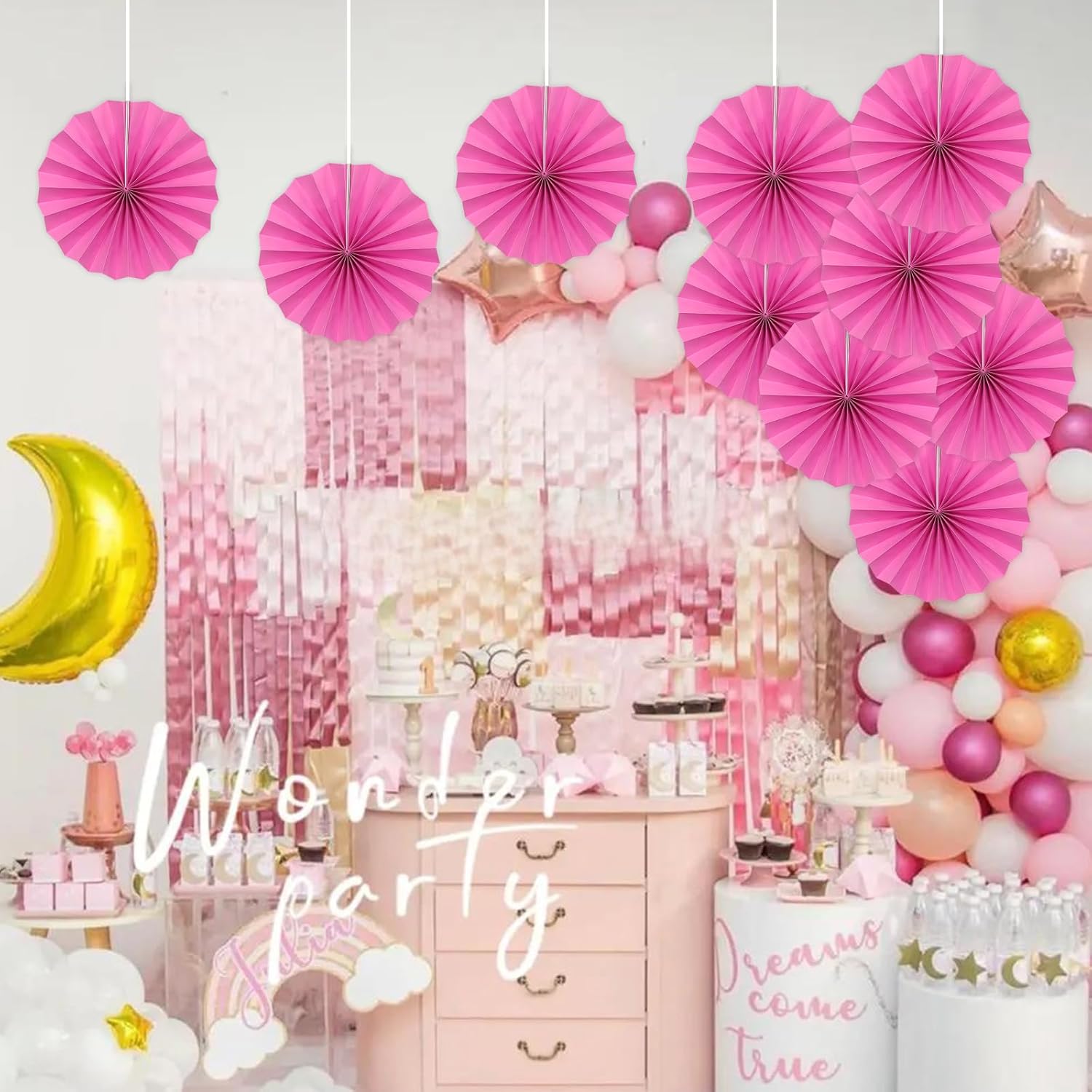 Red Graduation Party Decor,Girls Party Decorations ,Party Supplies Party Fans 8in, Anniversary Decorations for Party,Wedding Graduation Events Accessories 30 Color DIY Set (Rose Red)