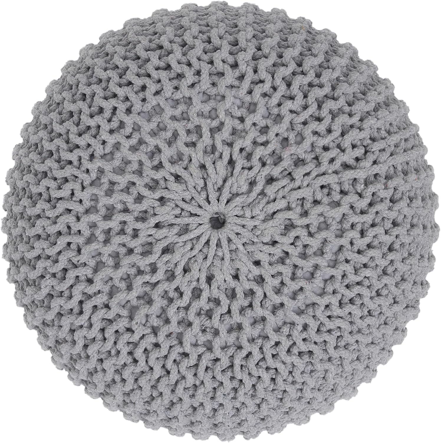 - MAKES A LOVELY, THOUGHTFUL GIFT IDEA: Our knit braided accent cord pouf ottoman is a gift that will keep on giving for many years to come. Surprise a friend or family member with one for a housewarming party, birthday, holiday, and other special occasions. Mix and match for a fun pop of color or choose one that best matches your décor and aesthetic.