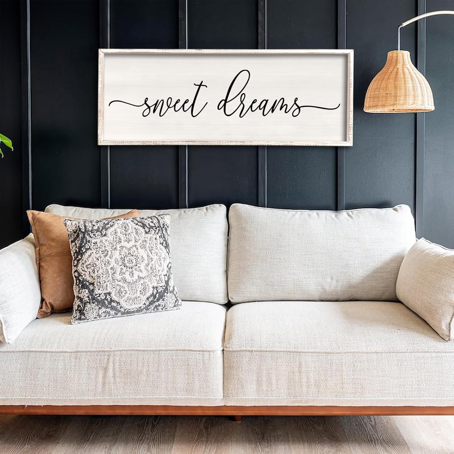 Sweet Dreams Wall Decor Above Bed 32''×12'' Master Bedroom Large Sweet Dreams Sign Farmhouse Wall Decor Guest Room Wood Rustic Framed Wall Art Hanging Decoration (White)