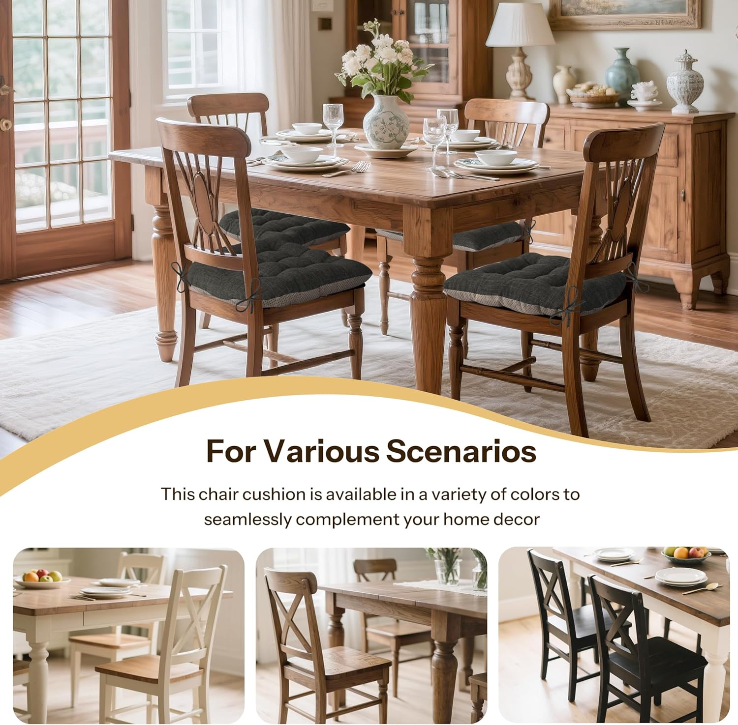 Non Slip Chair Cushions for Dining Chairs Set of 4 Kitchen Chair Cushions 18"x18"x3" Turfted Chair Pads Comfortable and Soft Seat Cushion with Ties, Dark Grey
