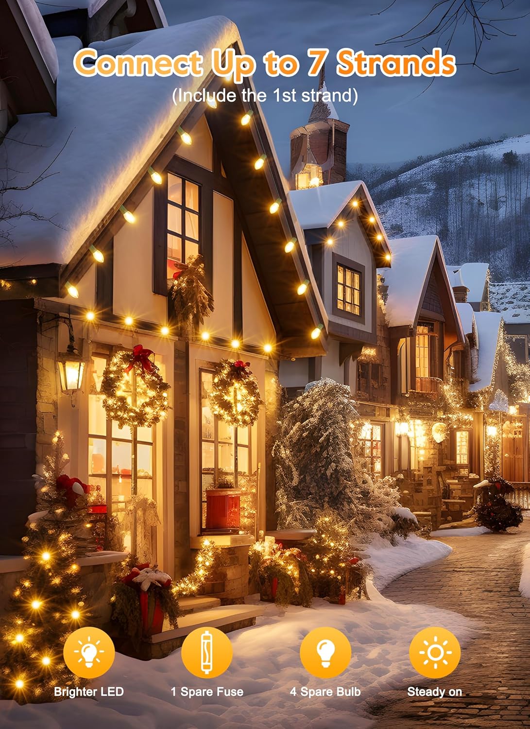 - Safety & Durable: UL certified C9 led christmas lights outdoor is built with weatherproof technology, which can withstand extreme temperatures, rain, wind, and damp climates. Safe and durable electric bistro lights either with a built-in spare fuse for easy replacement