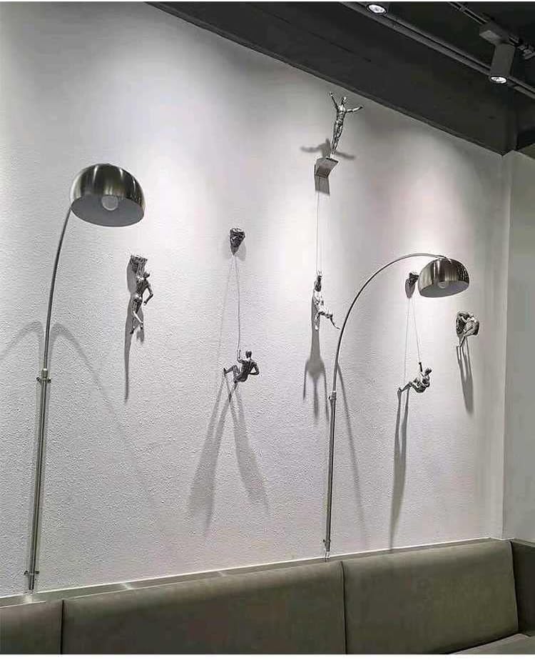 - Decorative statue of rock climbers: modern design, the image of a person climbing upward, symbolizes the fearless power of rock climbers. Rust wall art, interesting design sculpture decoration.