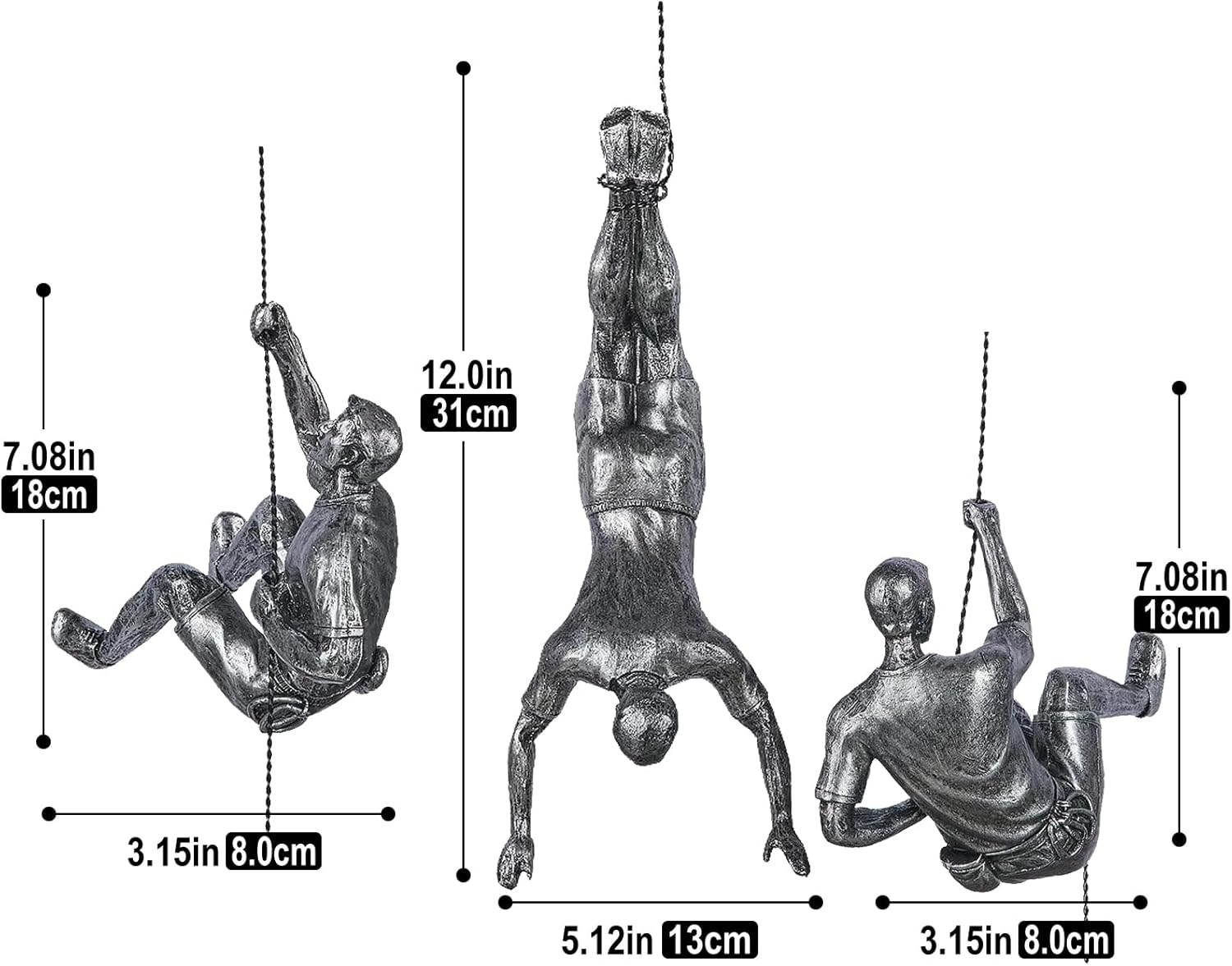 - Modern sculpture art: resin material, wire for hanging, the sculpture is handmade by experienced artisans, and the mountaineering man's sculpture adds a new decoration to your family.
