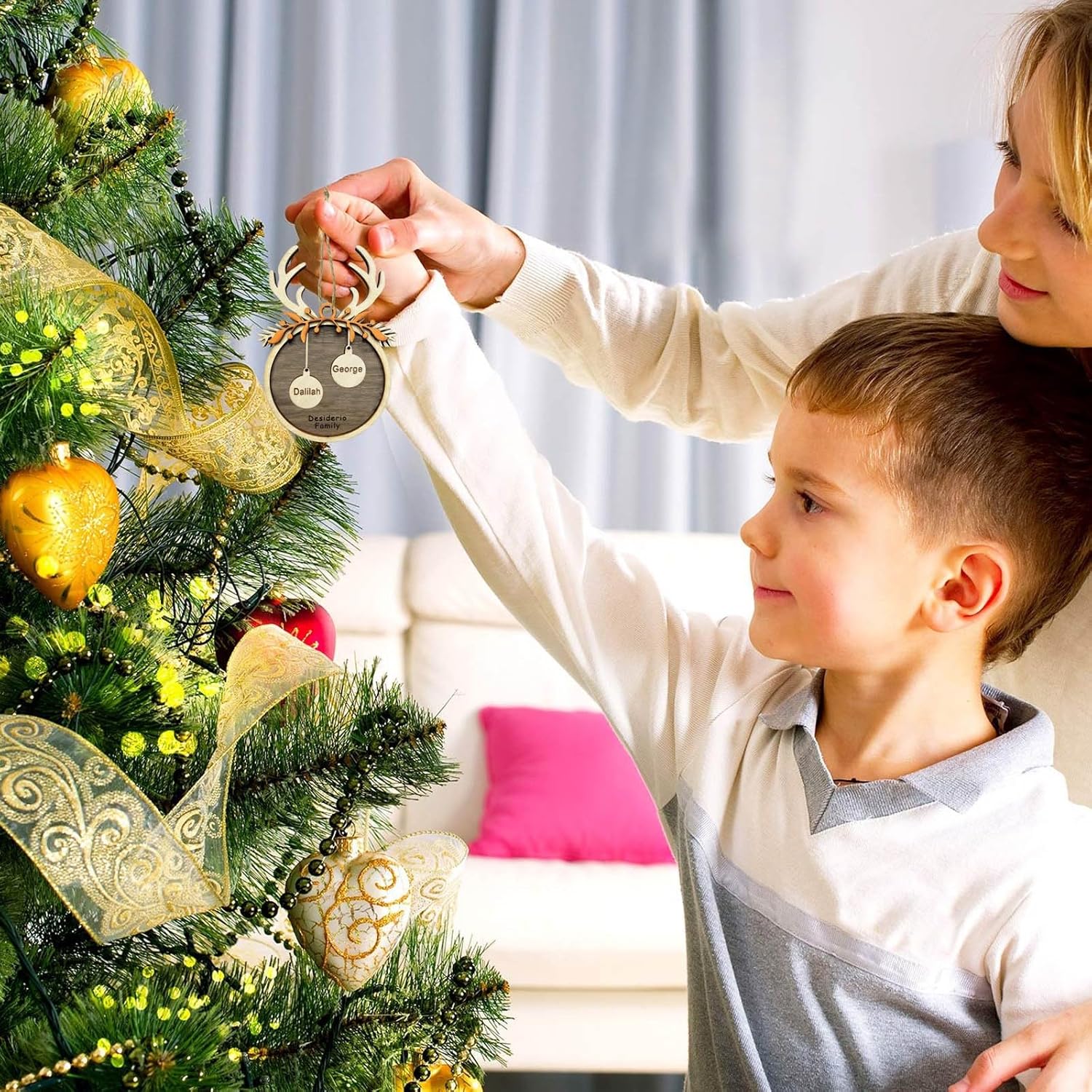 2025 Personalized Christmas Ornaments Family of 2/3/4/5/6/7/8,Custom Reindeer Christmas Wooden Ornaments Deorations with Names,Customized Xmas Ornament Tree Deorations,Personalized