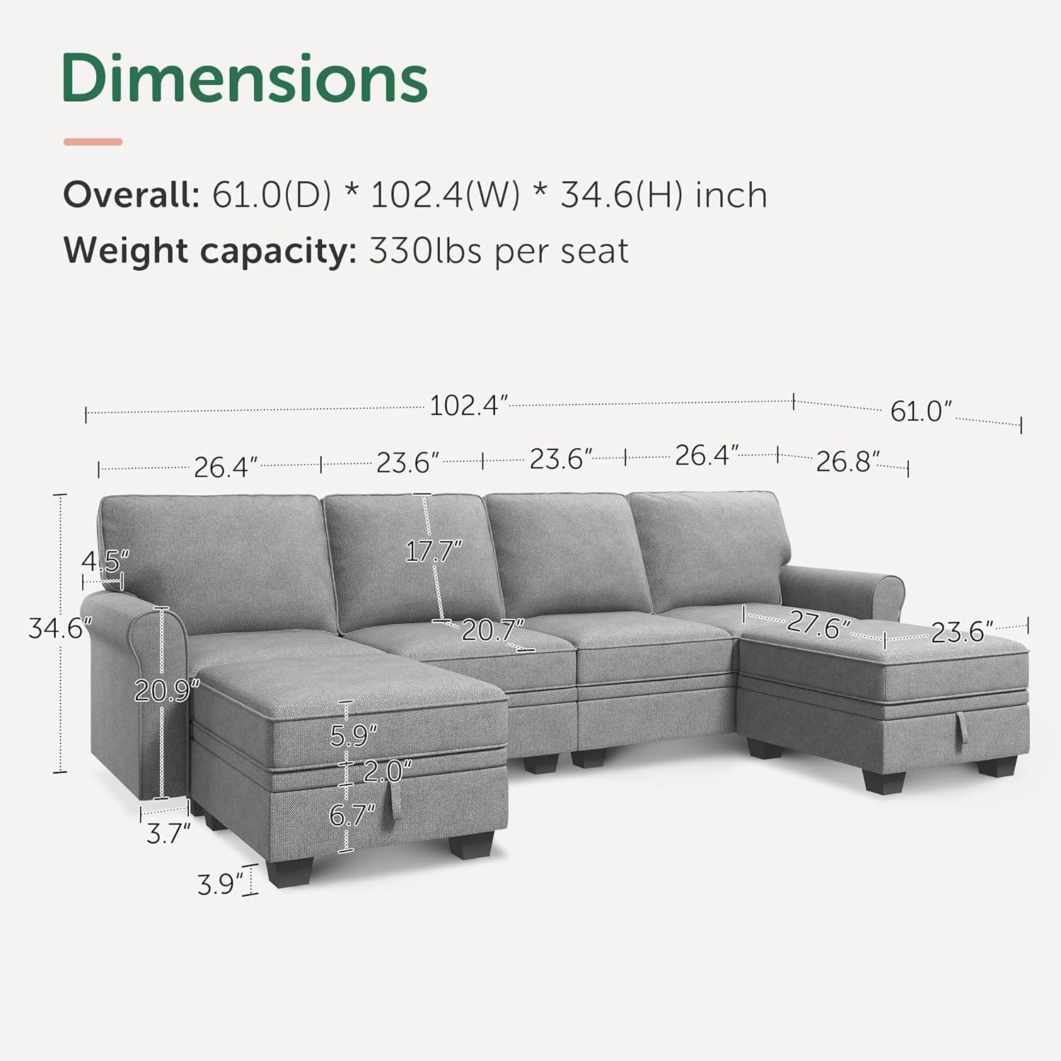 - Product Dimensions : 61"D x 102.4"W x 34.6"H