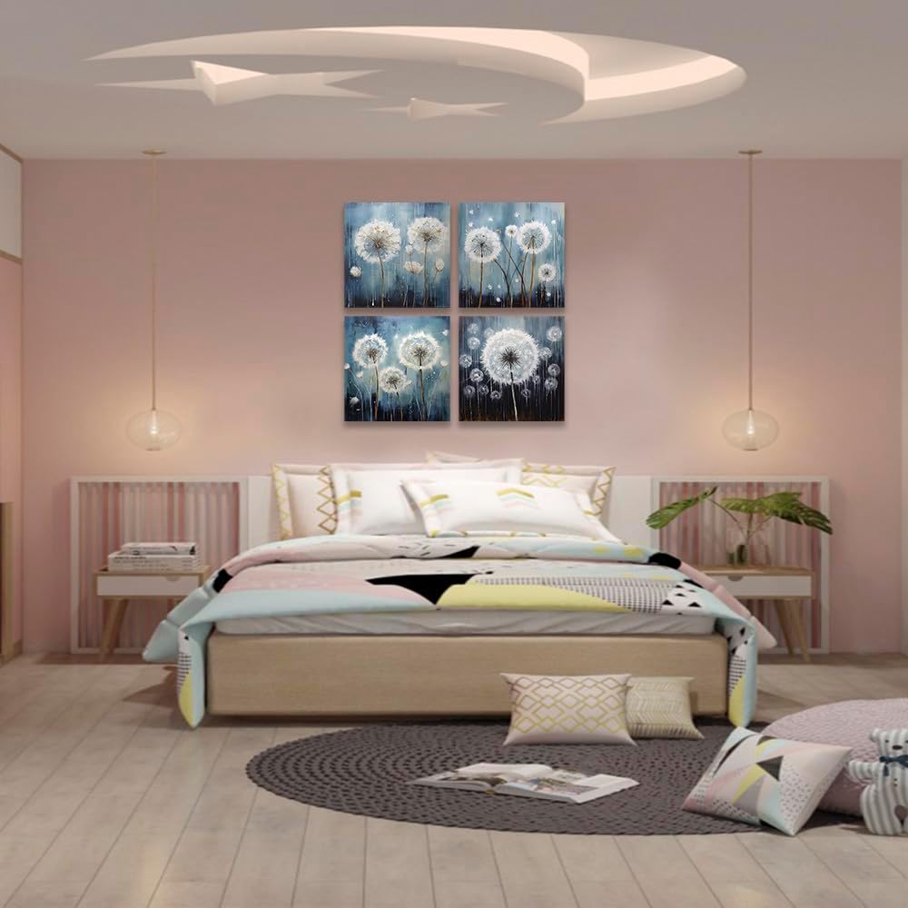 RUISHI Canvas Wall Art For Bathroom Abstract Dandelion Painting for Living Room Girls Bedroom Modern Abstract Flower Prints Artwork Home Office Decoration 12L x 12W