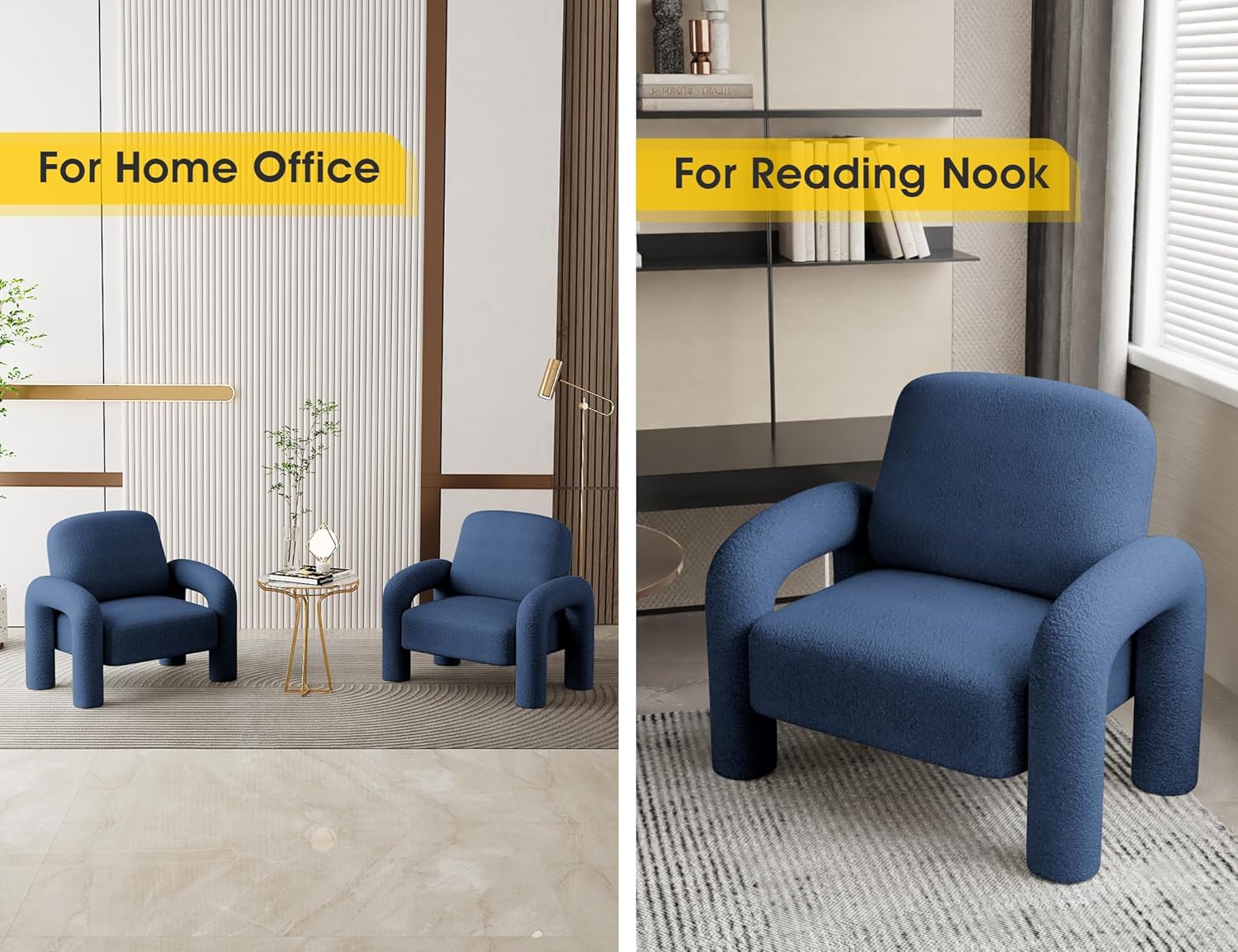 Modern Sherpa Accent Chair, Teddy Upholstered Arm Single Sofa, Cozy Fluffy Reading Chair for Living Room, Bedrooms, Corner (Navy Blue)