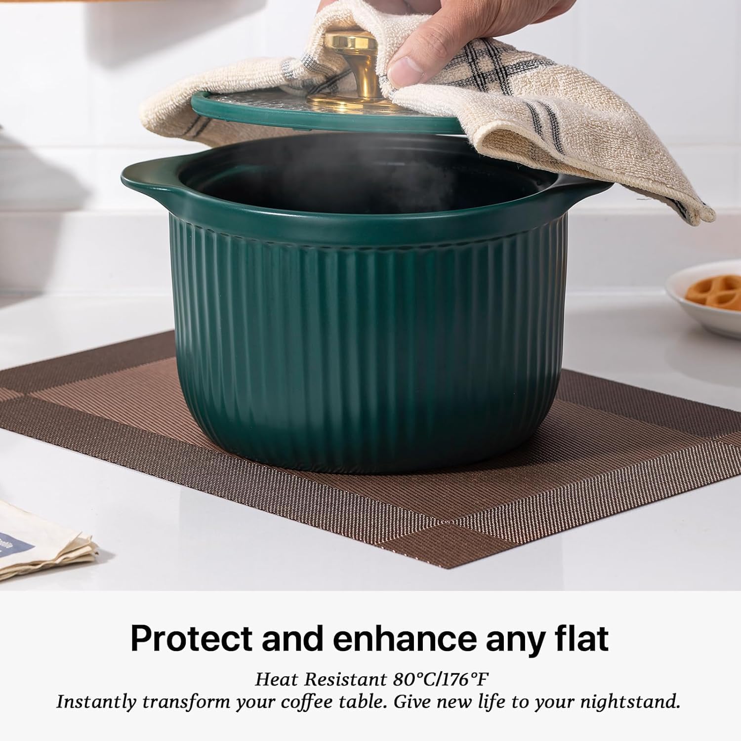 - HEAVY-DUTY:We uses the German-imported higher grammage vinyl material (Specialty PVC)than other placemats on the market,plus the precise,dense weave craftsmanship to give the woven placemats a thicker feel and make the place mats long-lasting.