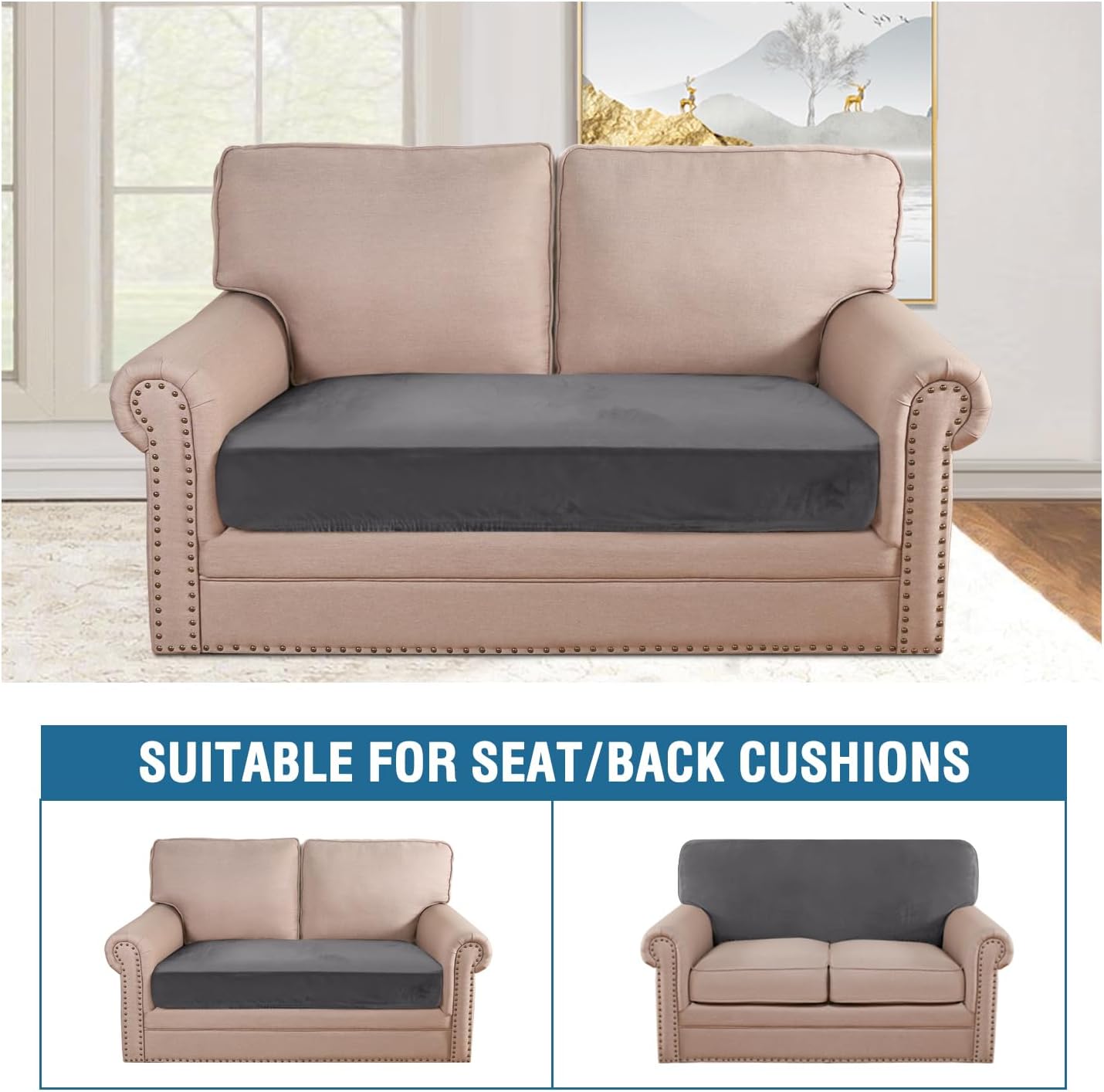 H.VERSAILTEX Velvet Stretch Individual Loveseat Couch Cover Plush Slipcover for Sofa Furniture Protector Seat Cover (1 Piece Loveseat Cushion Cover, Grey)