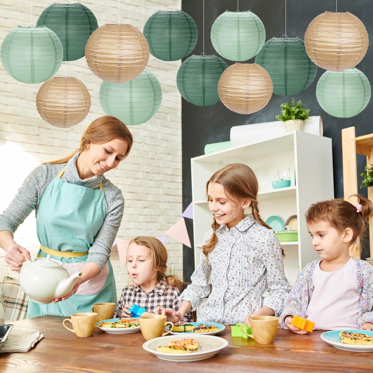 - PAPER LANTERN SET INCLUDED- Sage green party decorations set including 6 pieces of 10 inch paper lanterns, 6 pieces of 12 inch paper lanterns, 12 pieces of battery operated mini LED lights, set comes in sage green forest green and tan colors
