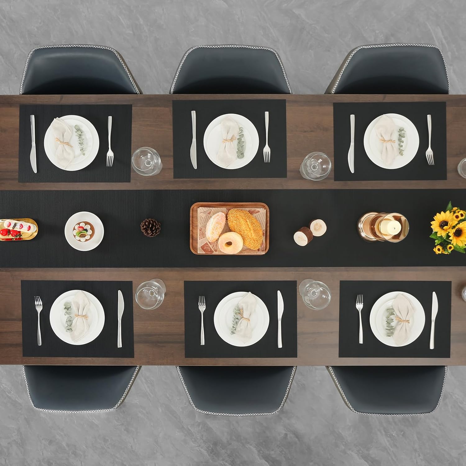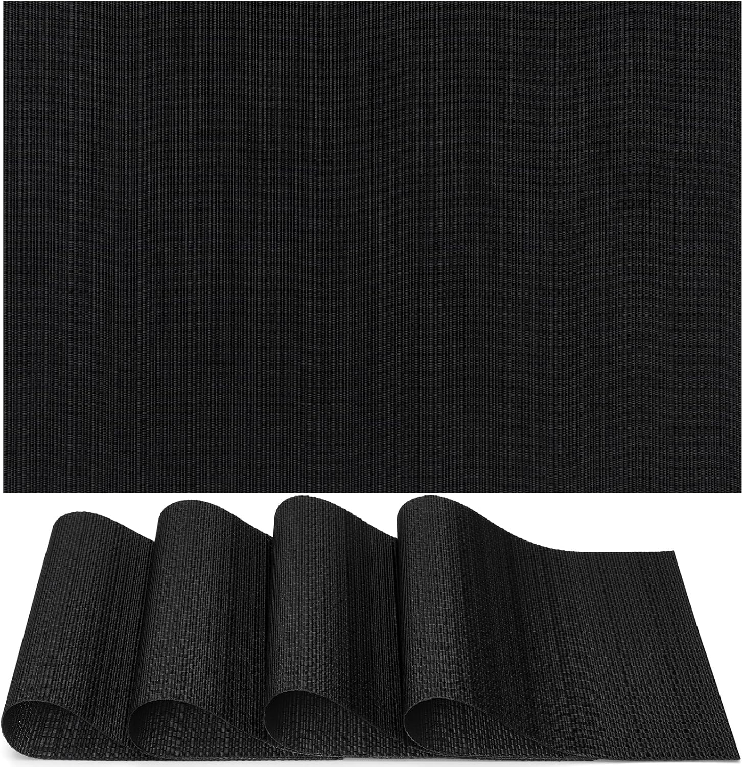 Myir JUN Placemats Set of 4, Vinyl Woven Placemats Place Mats Indoor Set of 4 Washable Table Mats Non-Slip Place mats for Dining Table (Black, Set of 4)