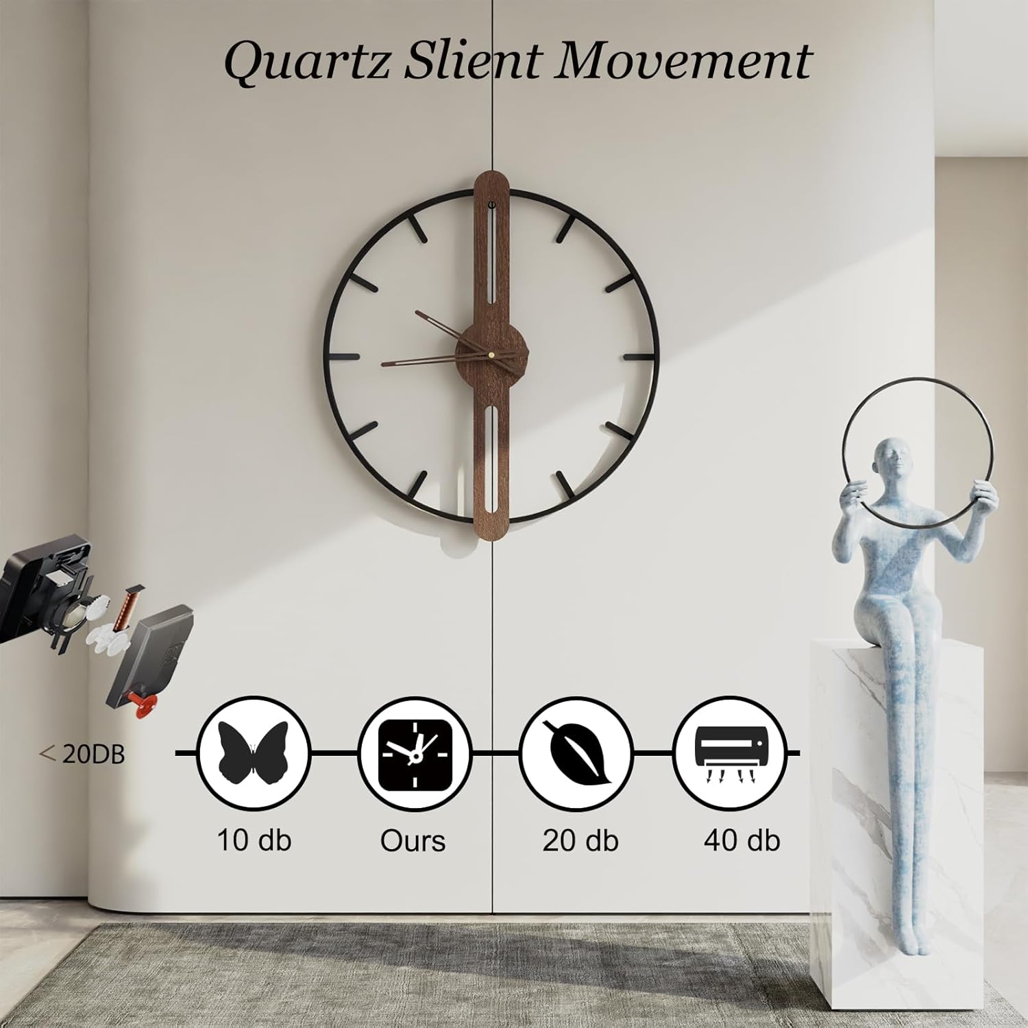 - Refined Modern Minimalism: This handcrafted wall clock boasts a natural walnut dial with nuture walnut clock hands, encased in a solid metal frame. Its blend of contemporary and vintage styles transforms it from a mere timepiece into an elegant work of art, enhancing your home decor
