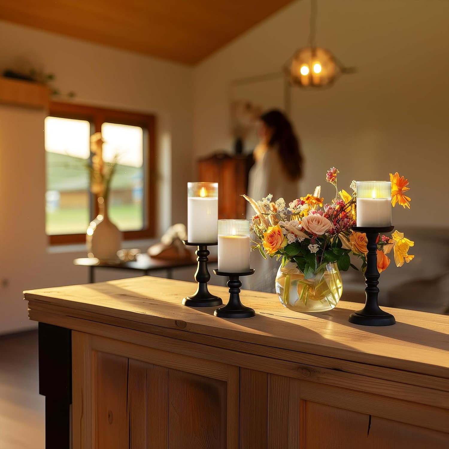 - Ribbed Glass Flameless Candles - Our battery candles are carefully crafted from real wax with unique ribbed glass shell. These electric candles look similar to traditional candles, but do not emit pungent odors and are safer