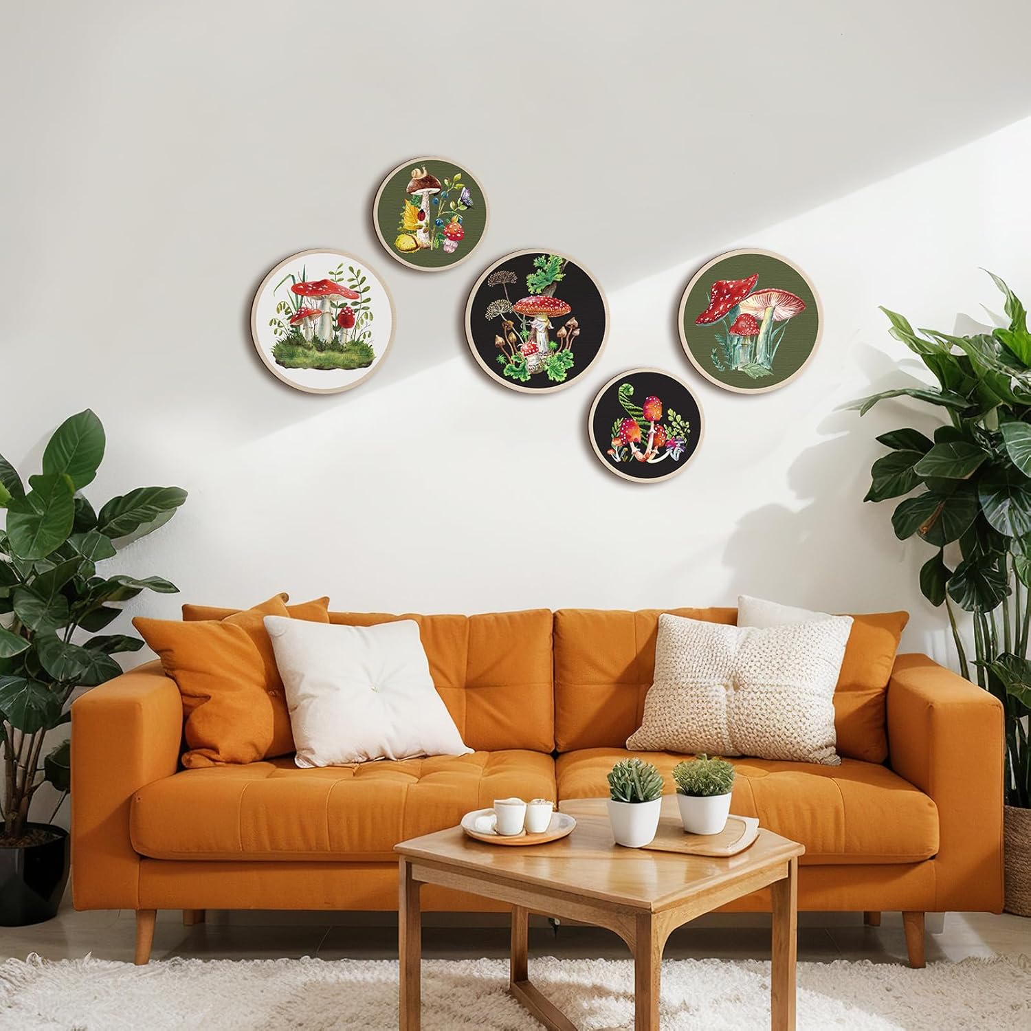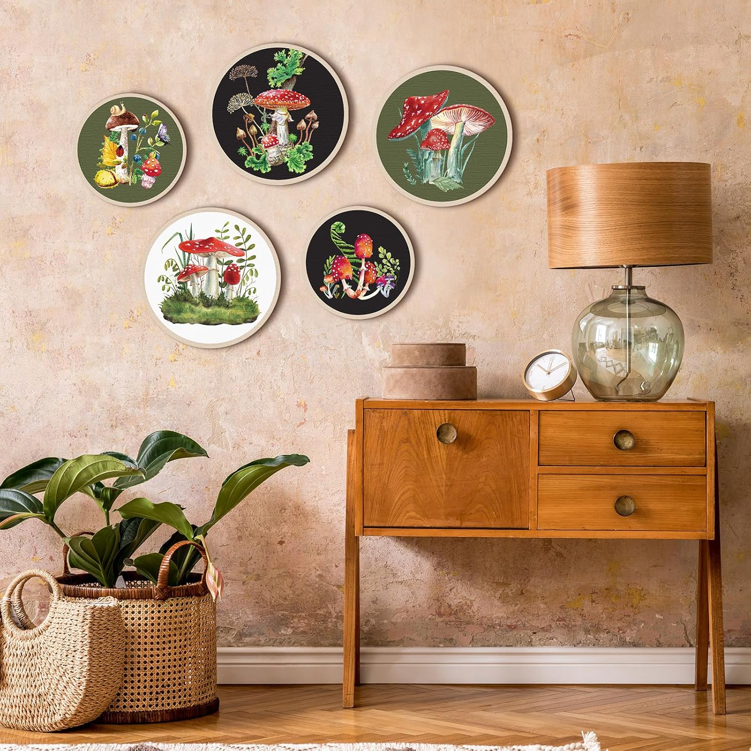 Qunclay 5 Pcs Wall Art Decor Wooden Living Room Wall Decor Bohemian Hanging Farmhouse Geometric 10'' and 8'' Aesthetic Wood Minimalist Posters for Bedroom(Mushroom)