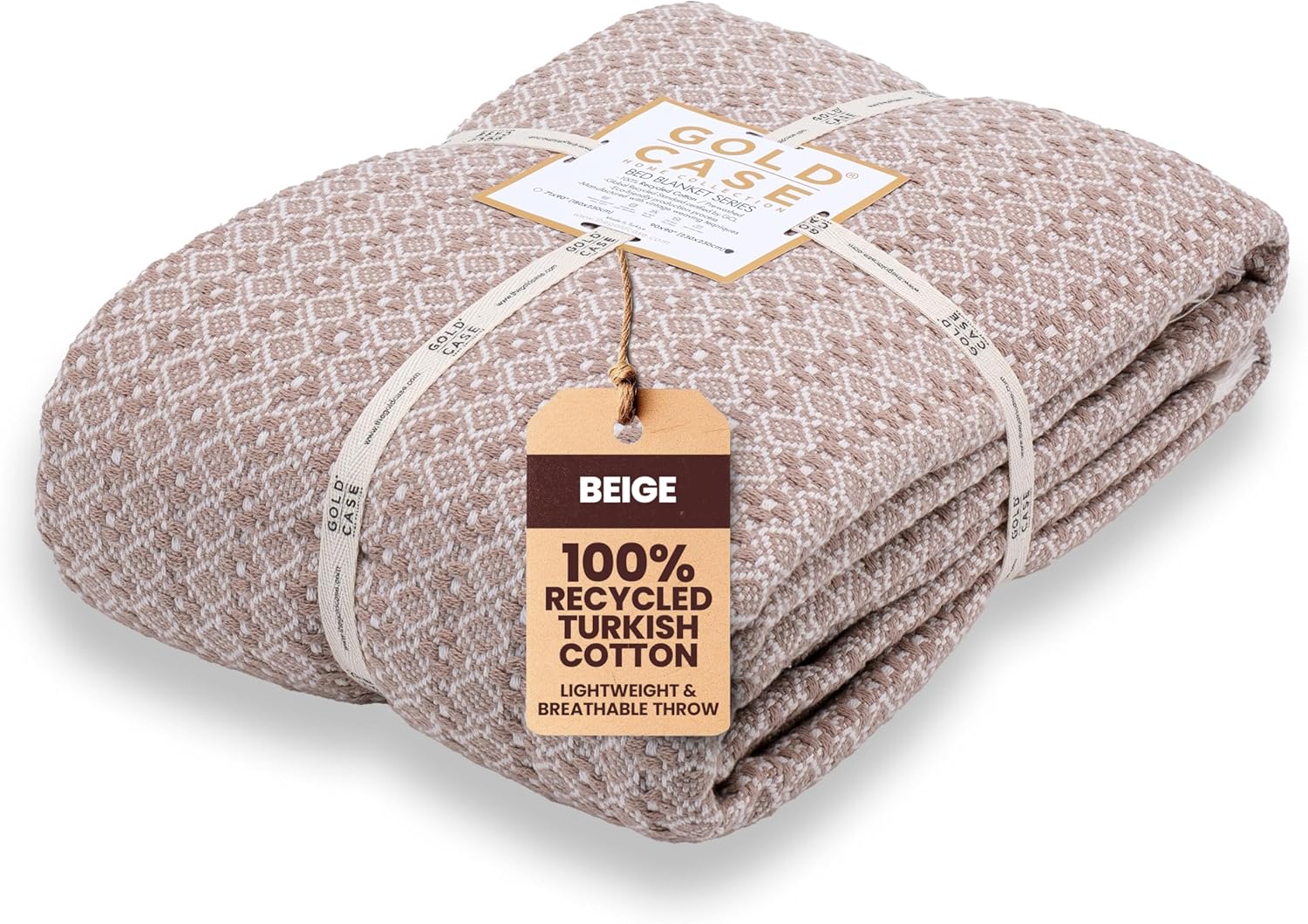 Gold Case Throw Blanket for Bed – 100% Recycled Turkish Cotton Bed Blanket – Decorative Throw Cotton Blankets for Living Room & Bedroom – Woven Twin Blankets - 71x90 - Beige