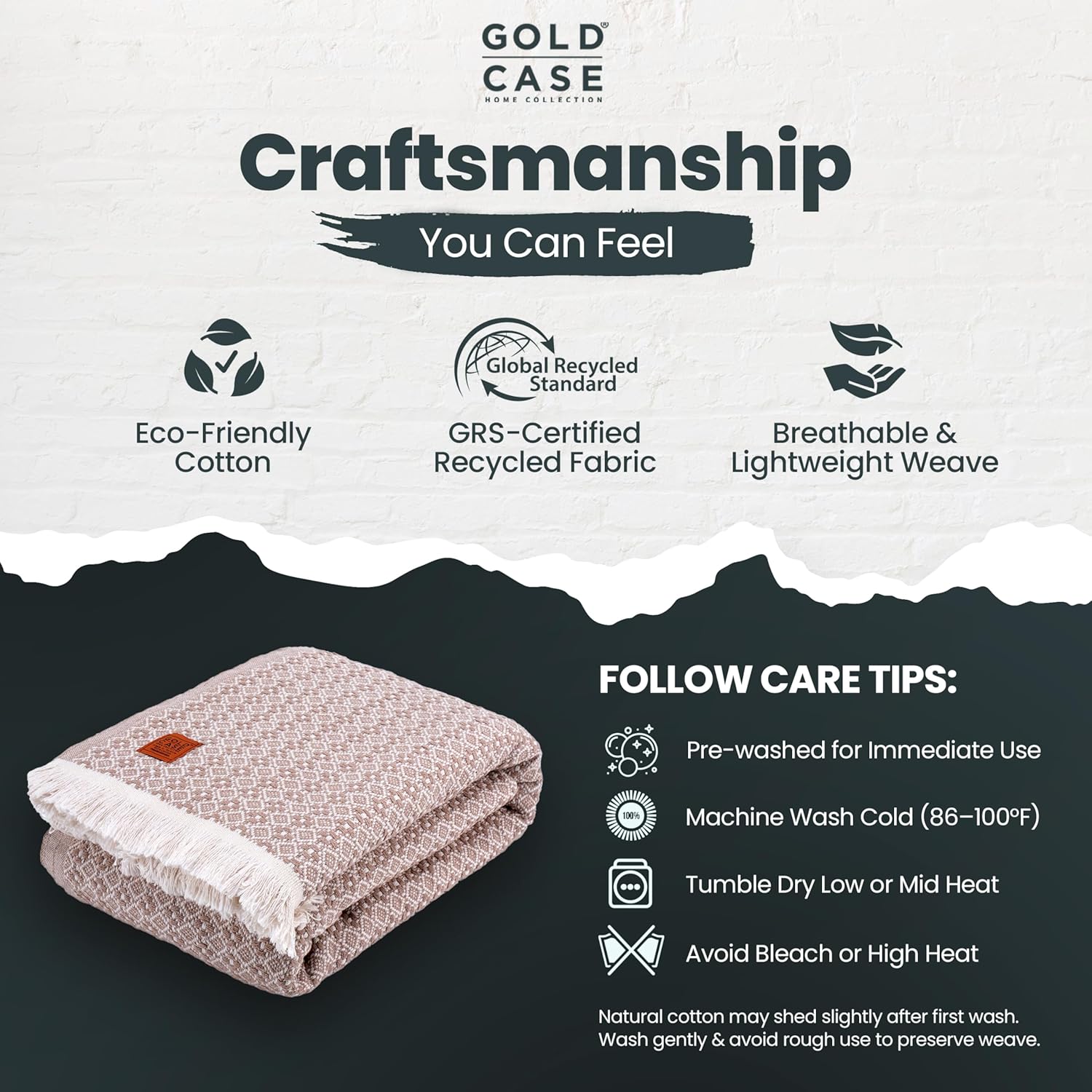 - CRAFTSMANSHIP BEYOND COMPARE: Thoughtfully woven from recycled cotton, this woven throw blanket is GRS-certified for sustainability; each breathable blanket is responsibly crafted with a breathable weave and finished edges that help minimize fraying