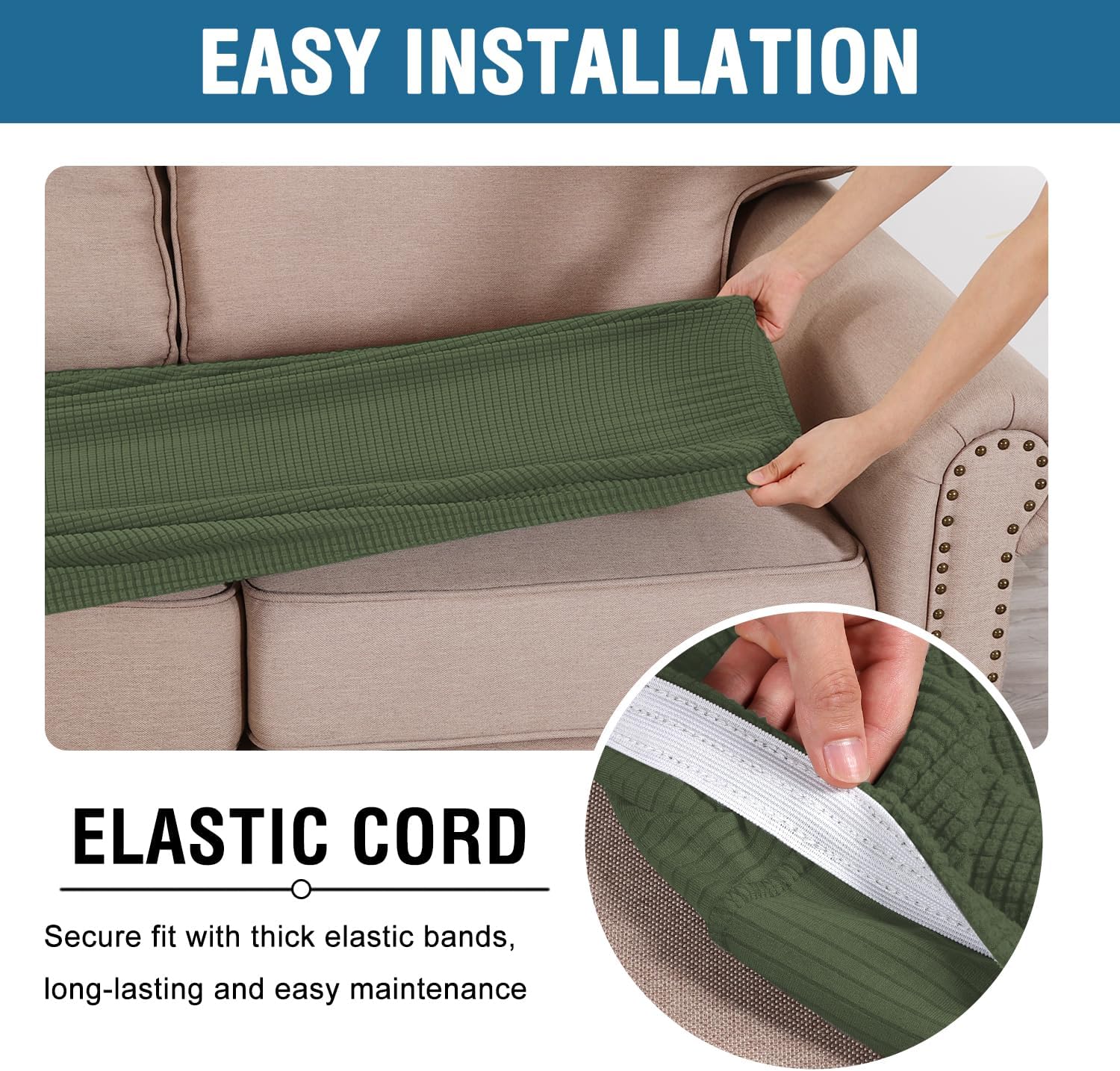 H.VERSAILTEX Super Stretch Individual Seat Cushion Covers Sofa Covers Couch Cushion Covers Slipcover Sets Thick Jacquard Textured Twill Fabric (1 Piece Sofa Cushion Cover, Bronze Green)