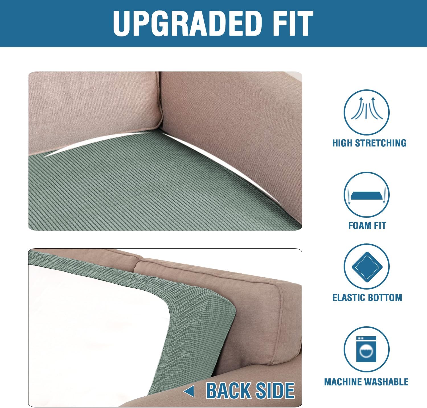 H.VERSAILTEX Super Stretch Individual Seat Cushion Covers Sofa Covers Couch Cushion Covers Slipcover Sets Thick Jacquard Textured Twill Fabric (1 Piece Chair Cushion Cover, Sage)