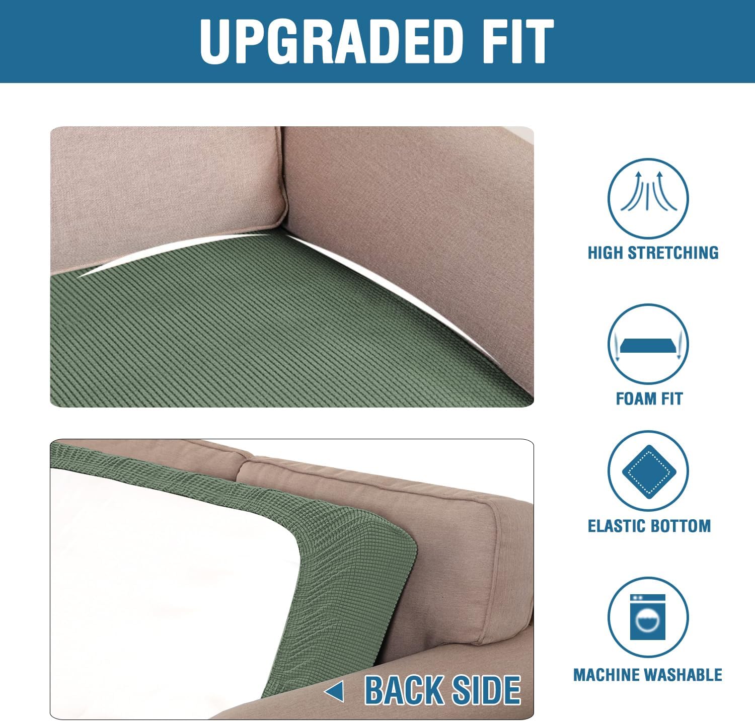 H.VERSAILTEX Super Stretch Individual Seat Cushion Covers Sofa Covers Couch Cushion Covers Slipcover Sets Thick Jacquard Textured Twill Fabric (1 Piece Loveseat Cushion Cover, Loden Frost)