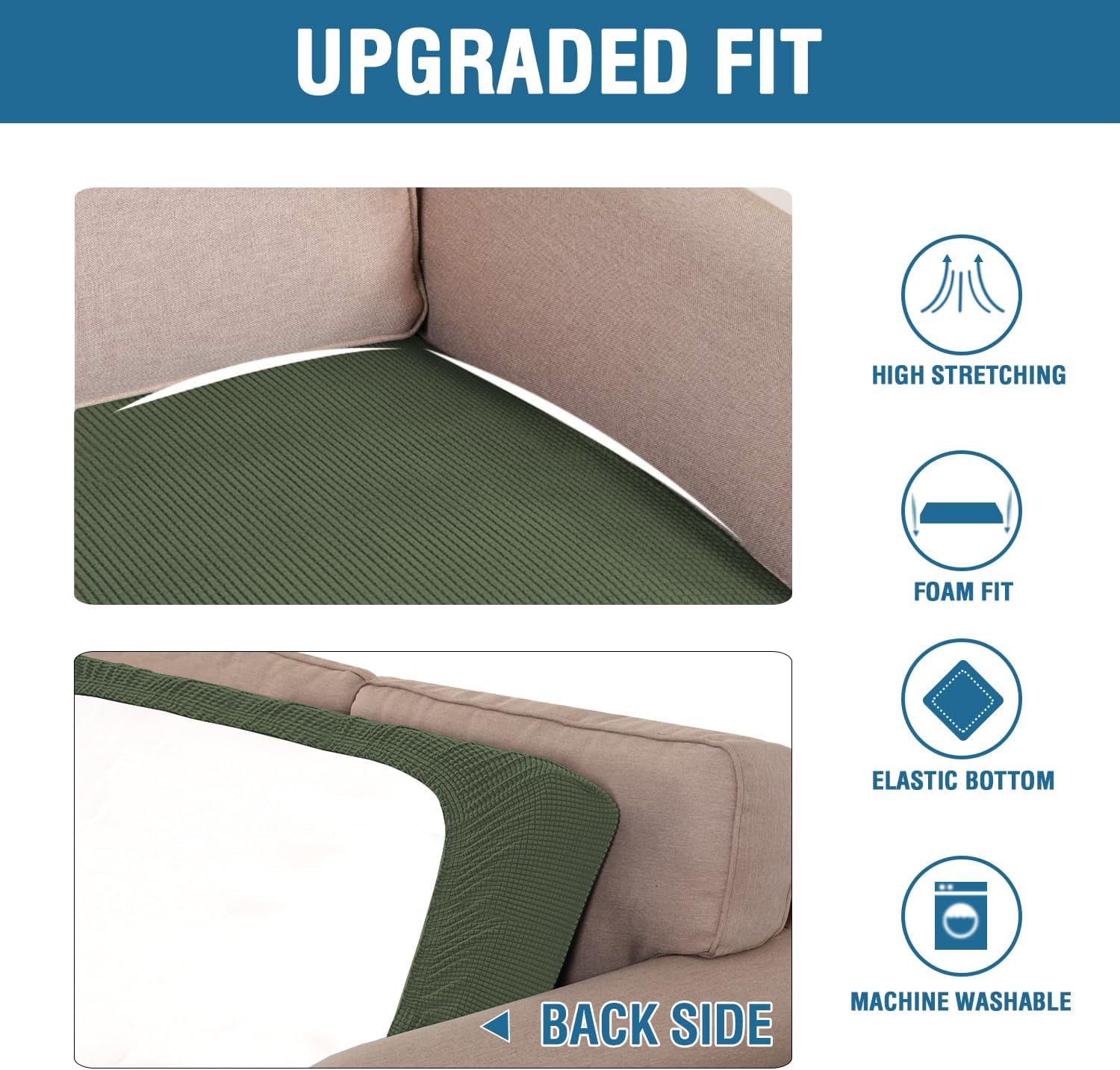 - NON SLIP: Effortless for installation (guide photos on selling page), sewn with thick elastic loops to cover the bottom edges. It is easy to install and take off, making your home more harmony, high recommended for both leather and cloth furniture