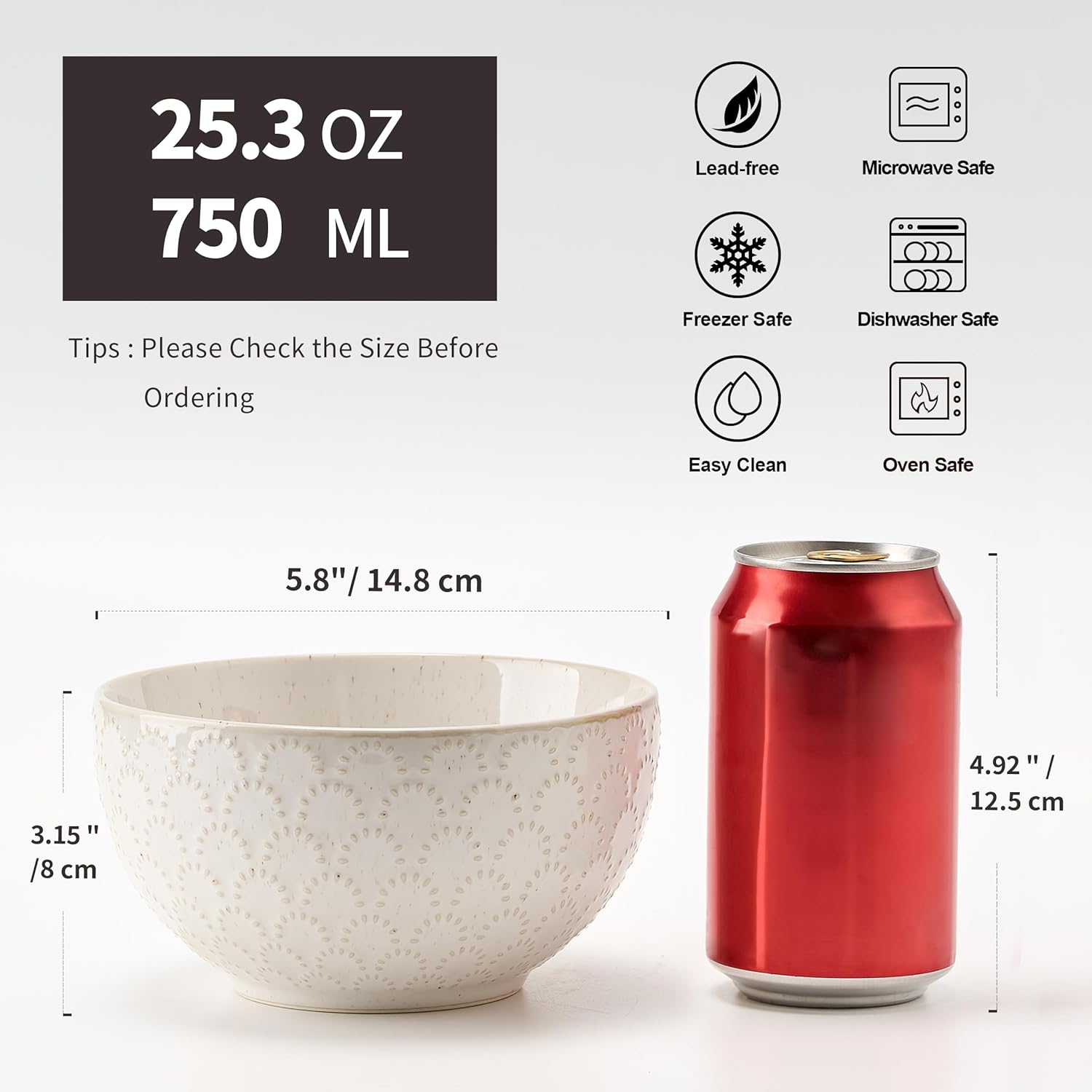 - [๐๐จ๐ง๐ -๐ฅ๐๐ฌ๐ญ๐ข๐ง๐ ๐๐๐ซ๐ฏ๐๐ซ] Soup bowls are fired at high temperatures, which are handmade for superior quality and durability. The white kiln-formed smooth glaze makes it easy to clean and maintain after use. More importantly, it is dishwasher, microwave and oven safe.