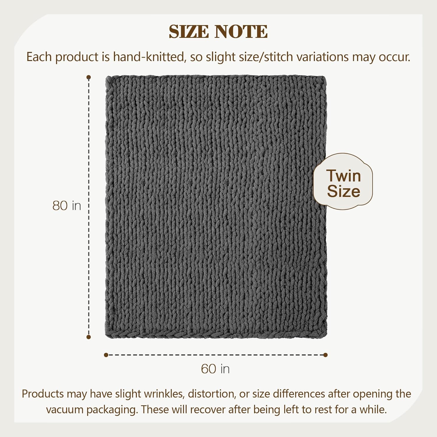 Carriediosa Chunky Knit Throw Blanket 60" X 80" Twin, 100% Hand Made Large Chenille Loop Yarn Soft Fluffy Throws for Couch Sofa Bed, Big Crochet Cozy Heavy Thick Cable Woven Blankets, Dark Grey