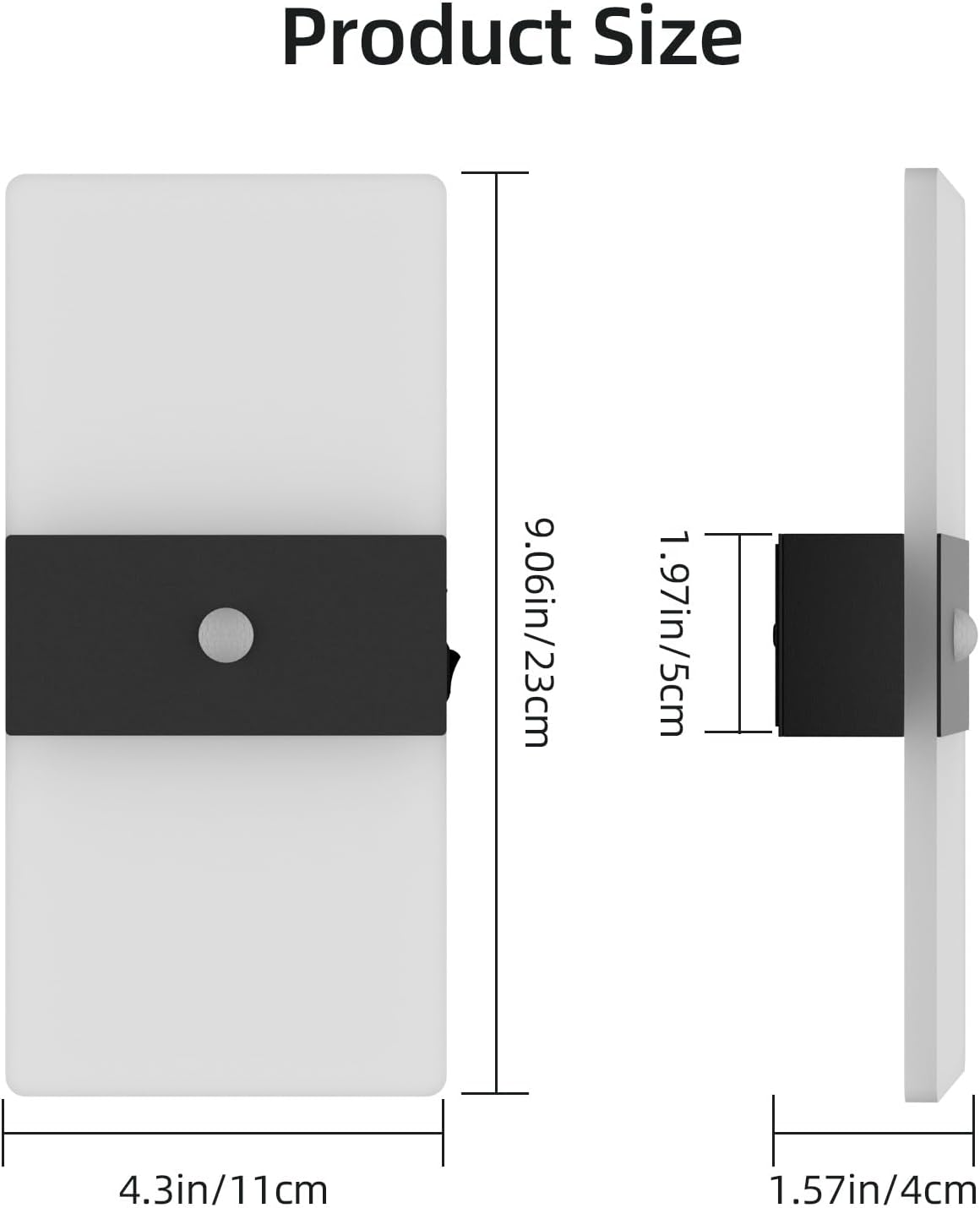 Wireless Motion Sensor Indoor Wall Sconces Set of 2, Morden Battery Acrylic LED Wall Lantern, Cordless Decorative Wall Lamps for Porch Patio Hallway Bedroom Living Room(Black)
