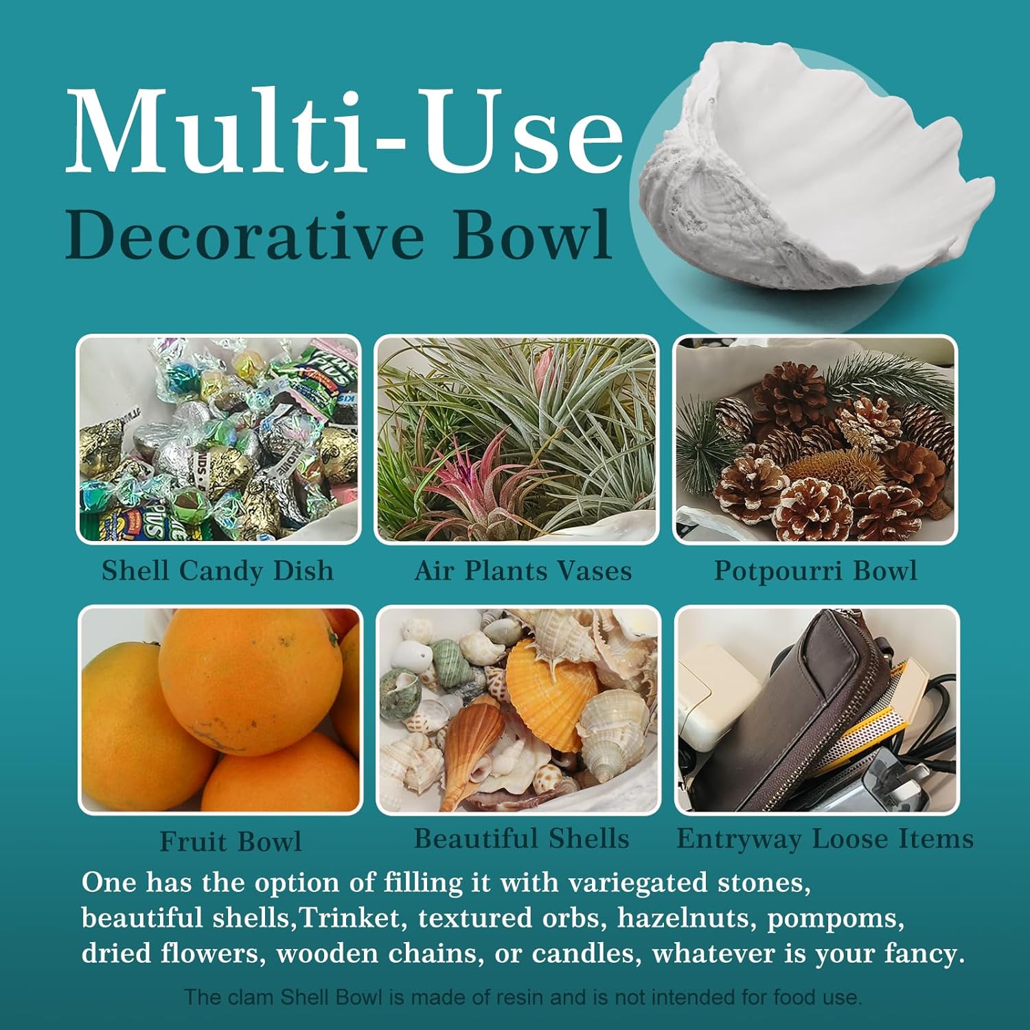 - 【Decorative Bowls for Home Decor】The large White clam shell shape decorative bowl design is the present of the nature,Though Faux, this shell looks real of a ocean weathered shell and is very suitable for use as aKey Bowl for Entry Table,Beach Theme Candy bowl,Fruit Bowl for Kitchen