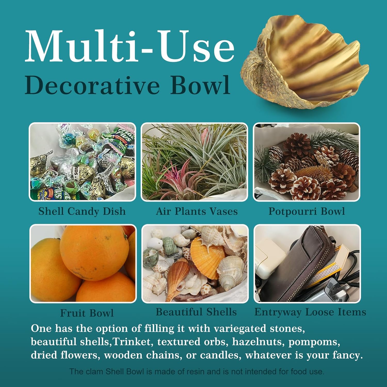 - 【Versatile Decor】Golden Large Clam shell decorative bowls available in two size and multiple colors to hold nice amount of objects for any season - Christmas, fall, Thanksgiving,Birthday Party, Daily Decoration.Share with your family members, friends, colleagues and nautical lovers