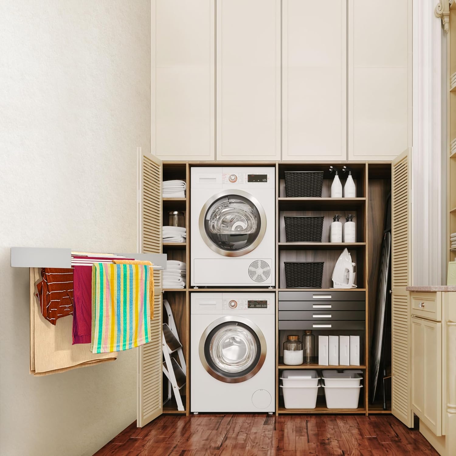 Step Up Laundry Drying Rack (Extra Large: 47 Inches, 12 Lbs), Wall Mounted, Retractable Clothes Drying Rack, 70lbs Capacity, 27 Linear Ft, with Wall Template and Long Drill Bit (47" White)