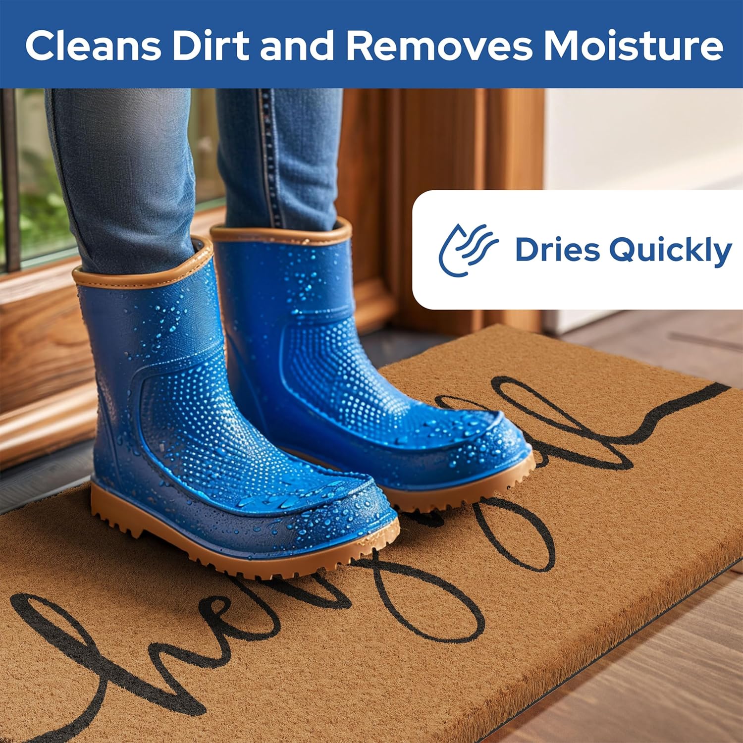 - Slip-Proof - Our non-slip rubber backing keeps the welcome door mat securely in place, preventing slips and falls. Whether you have a concrete, stone, or wooden porch, our exterior door mat outside entrance rug will stay put and keep your visitors safe.