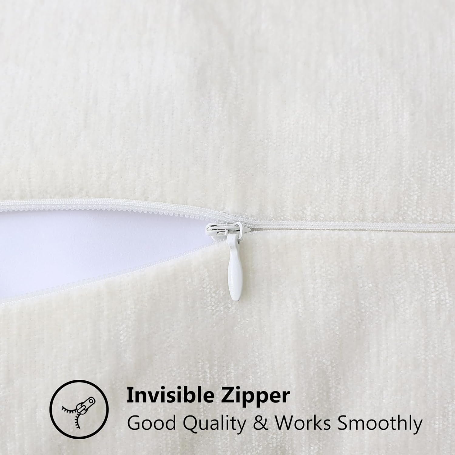 decorUhome Chenille Soft Throw Pillow Covers 16x16 Set of 2, Farmhouse Velvet Neutral Decorative Euro Pillow Covers with Stitched Edge for Couch Sofa Bed Home Decor, Cream White