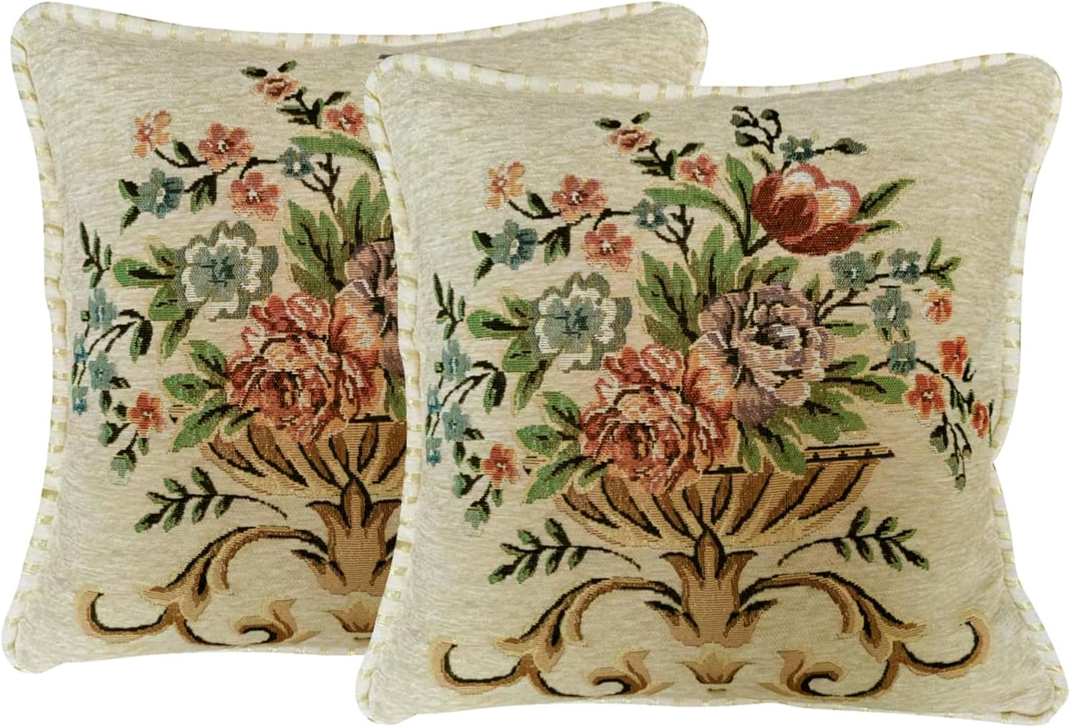 Set of 2 Beige Vintage Throw Pillows Covers 18x18in,Floral Embroidered Cushion Cover for Sofa Bedroom,Euro Sham Covers Retro Home Decor Pillows Covers